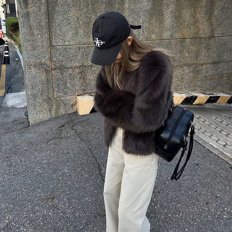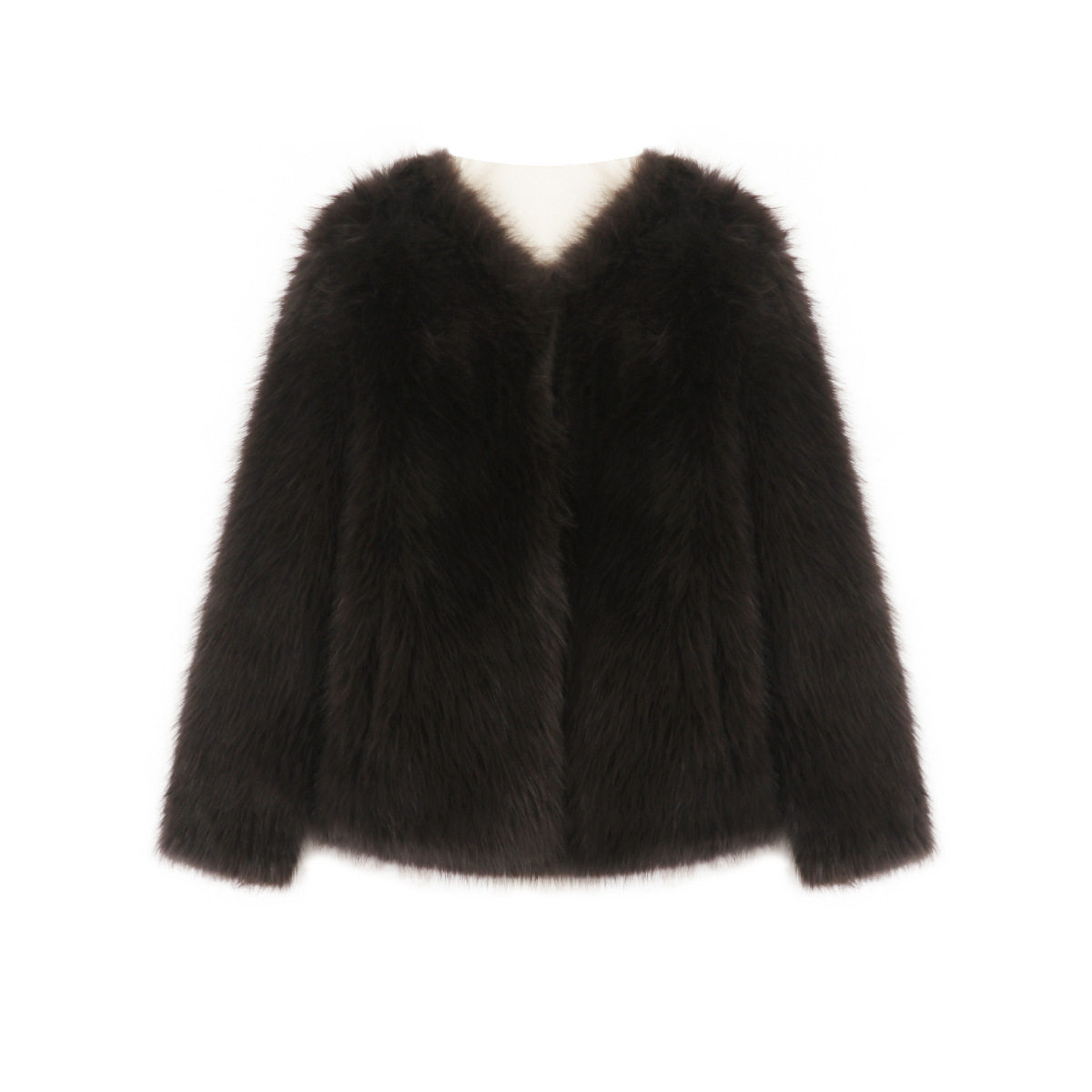 CulturE小众轻奢防貂毛毛绒加厚外套金属设计感宽松纯色短款 皮草
