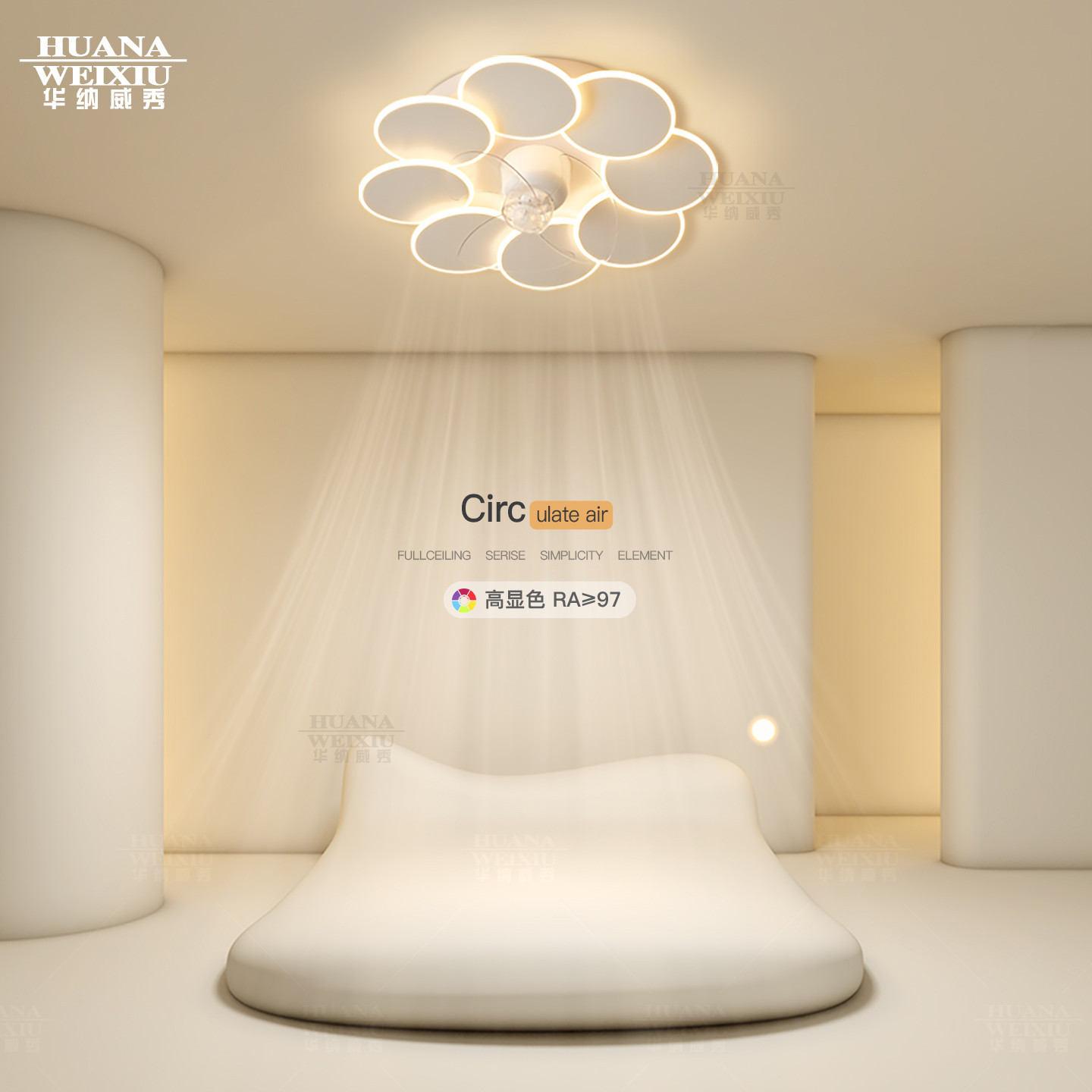全光谱无叶风扇灯2025年新款 隐形静音卧室吸顶主卧房间电扇吊扇灯