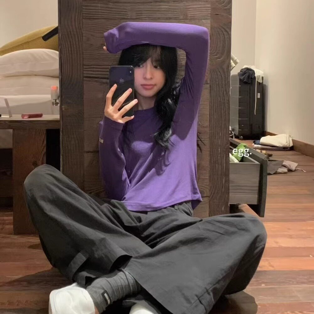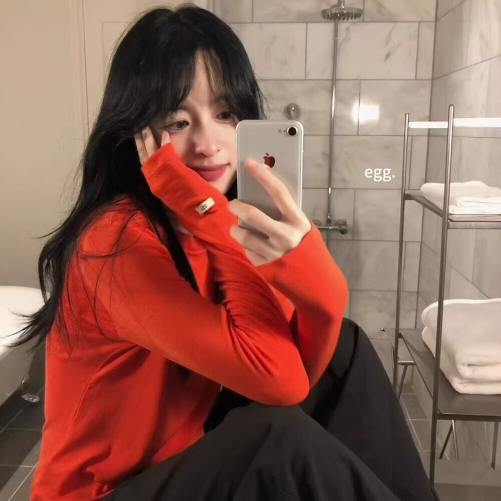 韩国egg鸡蛋家高弹力纯色基础圆领打底衫 上衣女 秋冬保暖百搭长袖