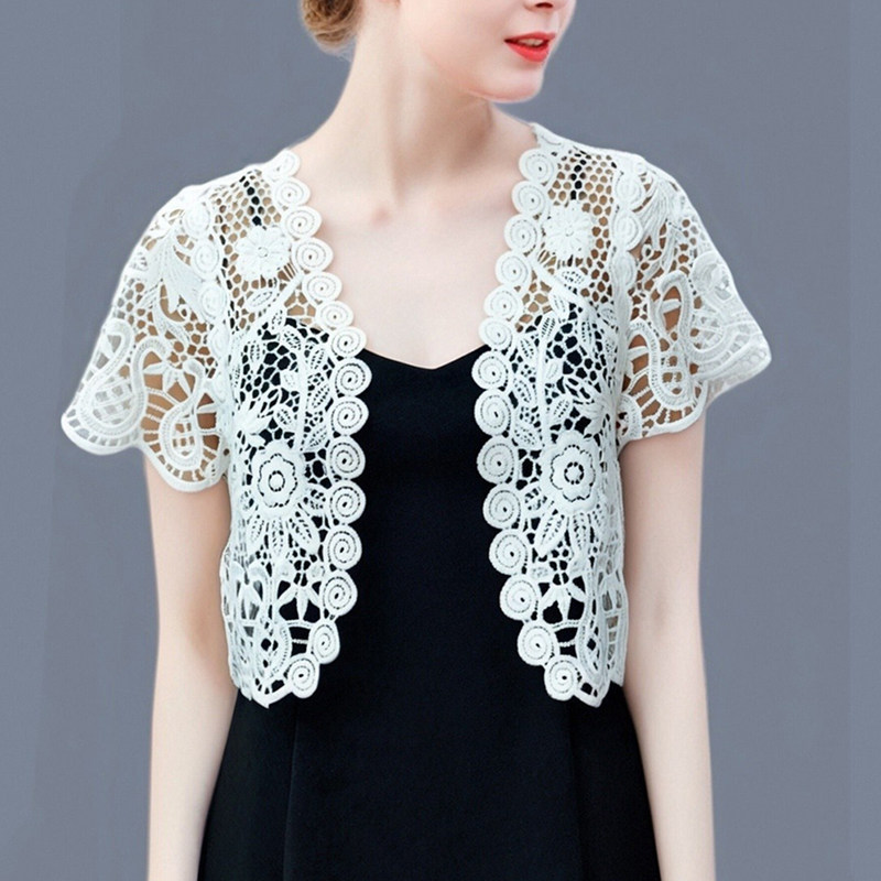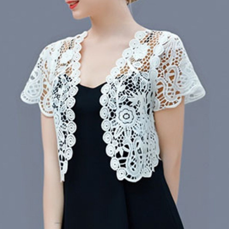 开衫 百搭薄款 纯色镂空防晒衣小外套 外搭短款 蕾丝小披肩女2025夏季