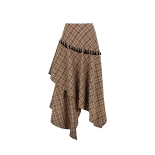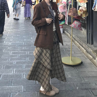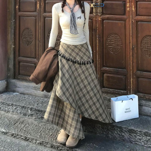 美拉德不规则格子半身裙女春秋季 胖mm显瘦a字梨形伯克利裙子 大码