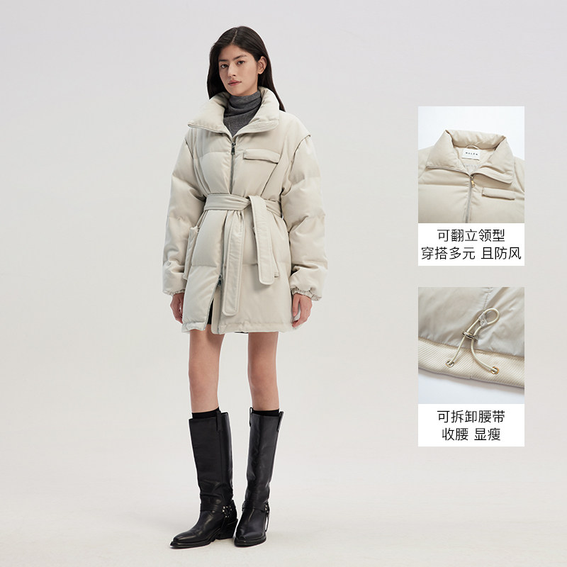 云感泡芙连帽轻盈韩系甜美羽绒服 雪中飞女士中长款 香菇来了
