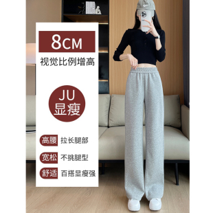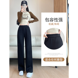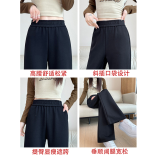 潮 女宽松休闲运动直筒小个子长裤 秋冬加绒加厚遮肉显瘦窄款 阔腿裤