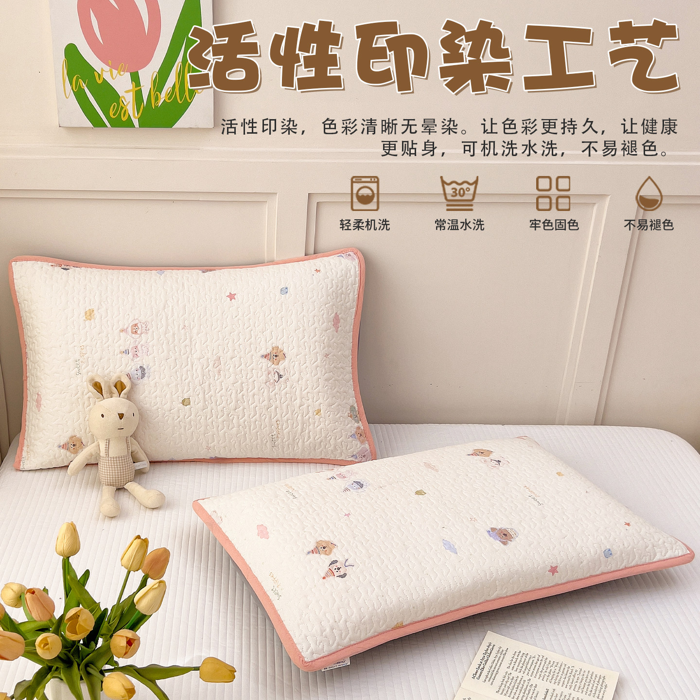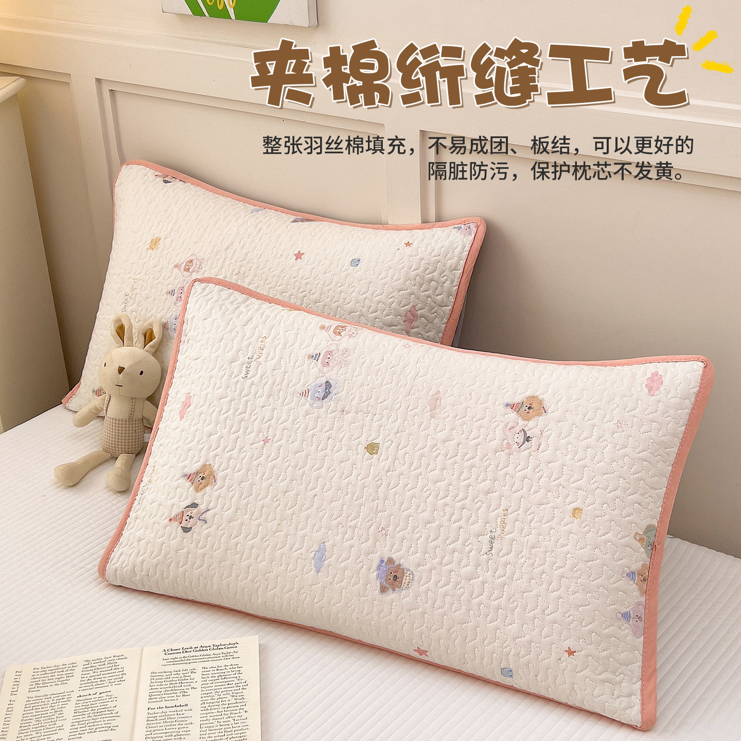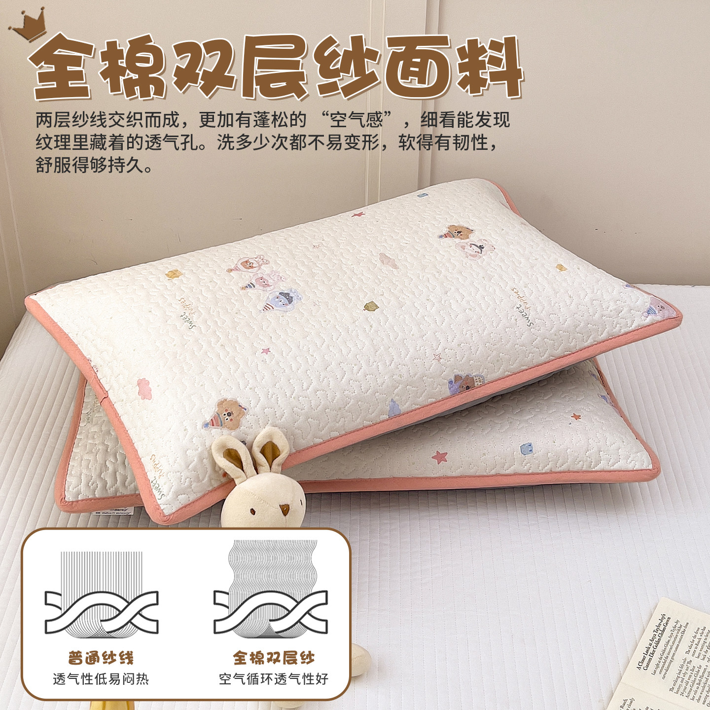 全棉双层纱布夹棉枕套纯棉儿童宝宝乳胶枕芯枕头套一对装 单件3050
