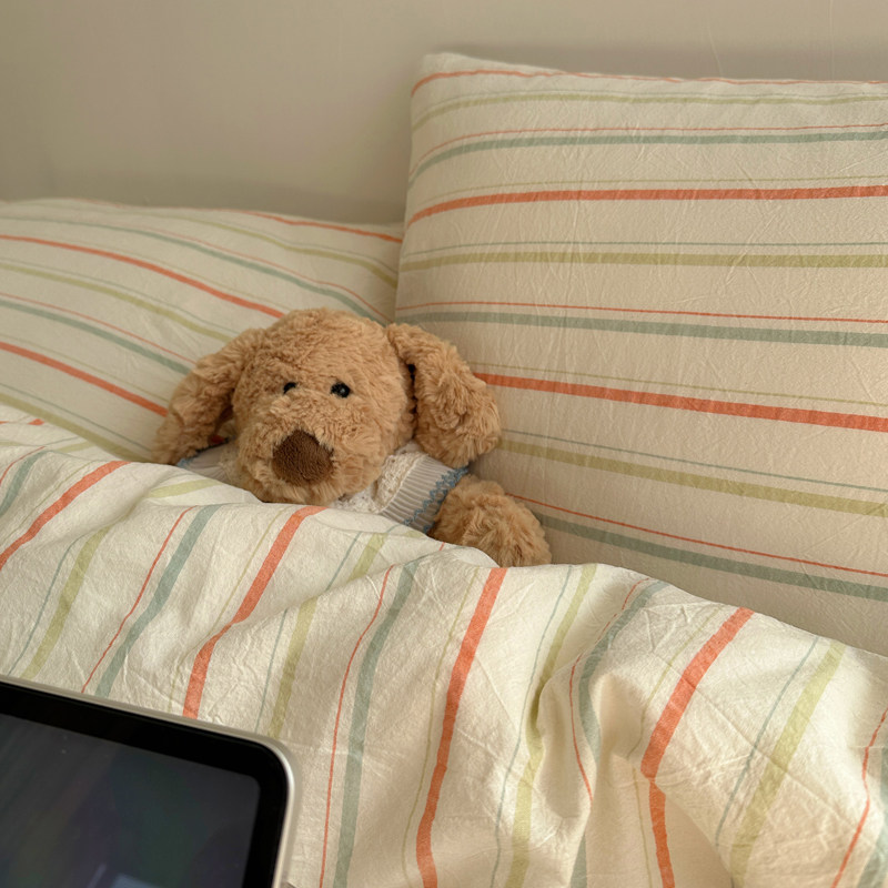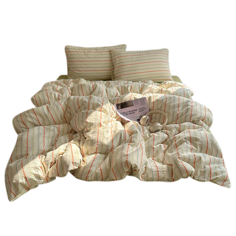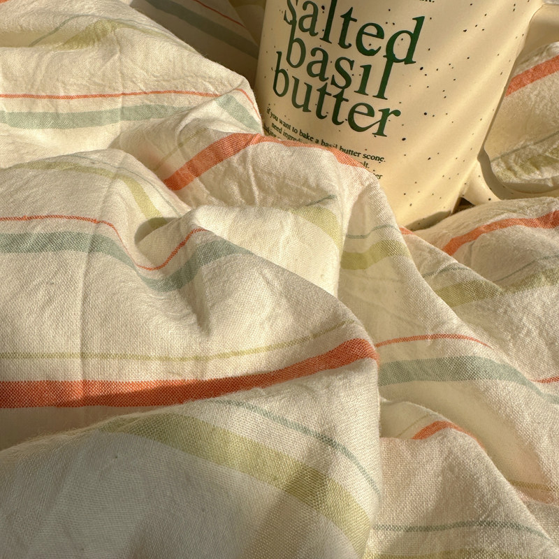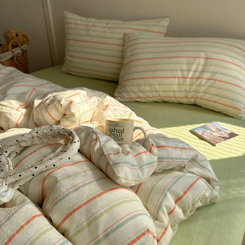 清新盐系奶绿 全棉水洗棉条纹四件套简约风宿舍公寓1.5米被套床品