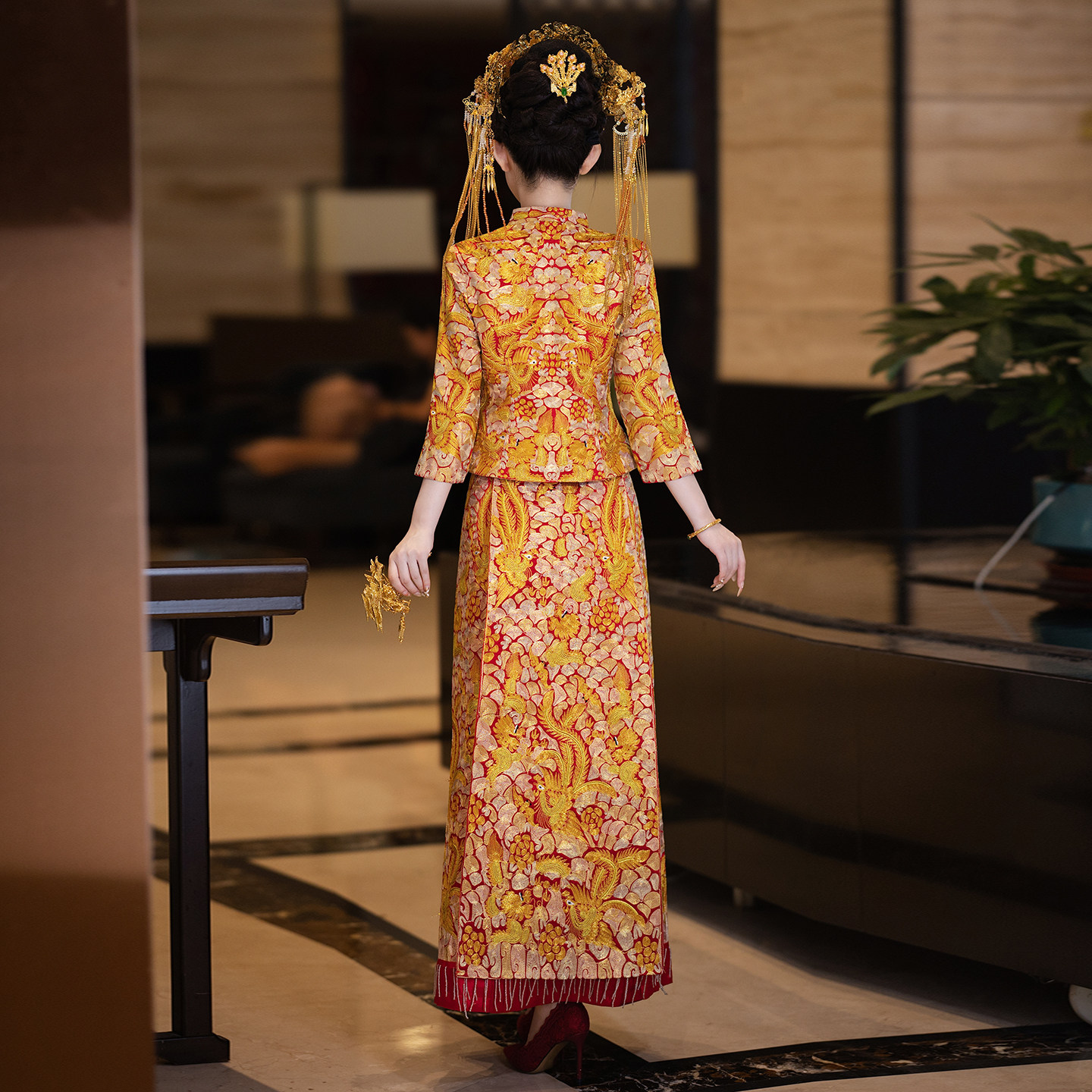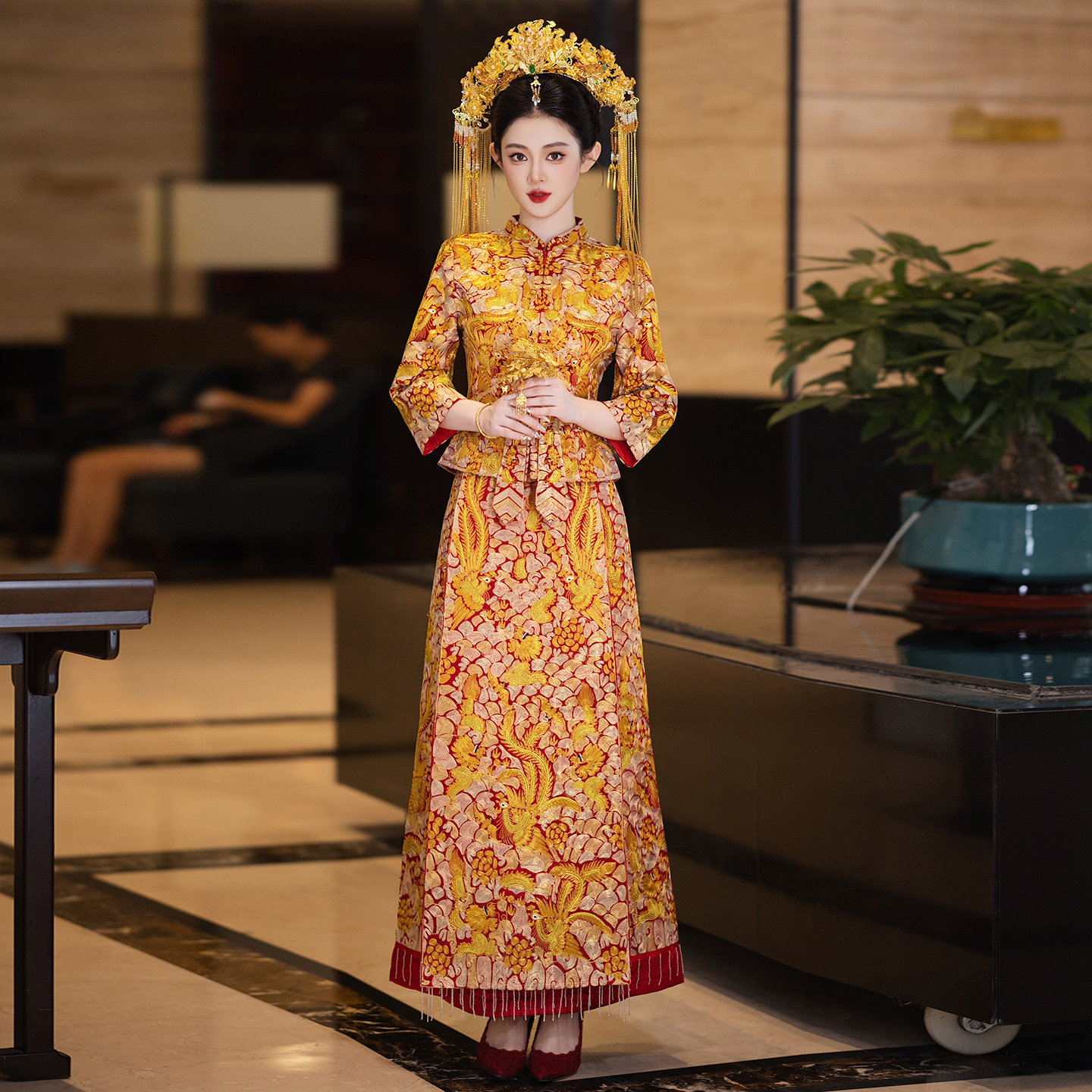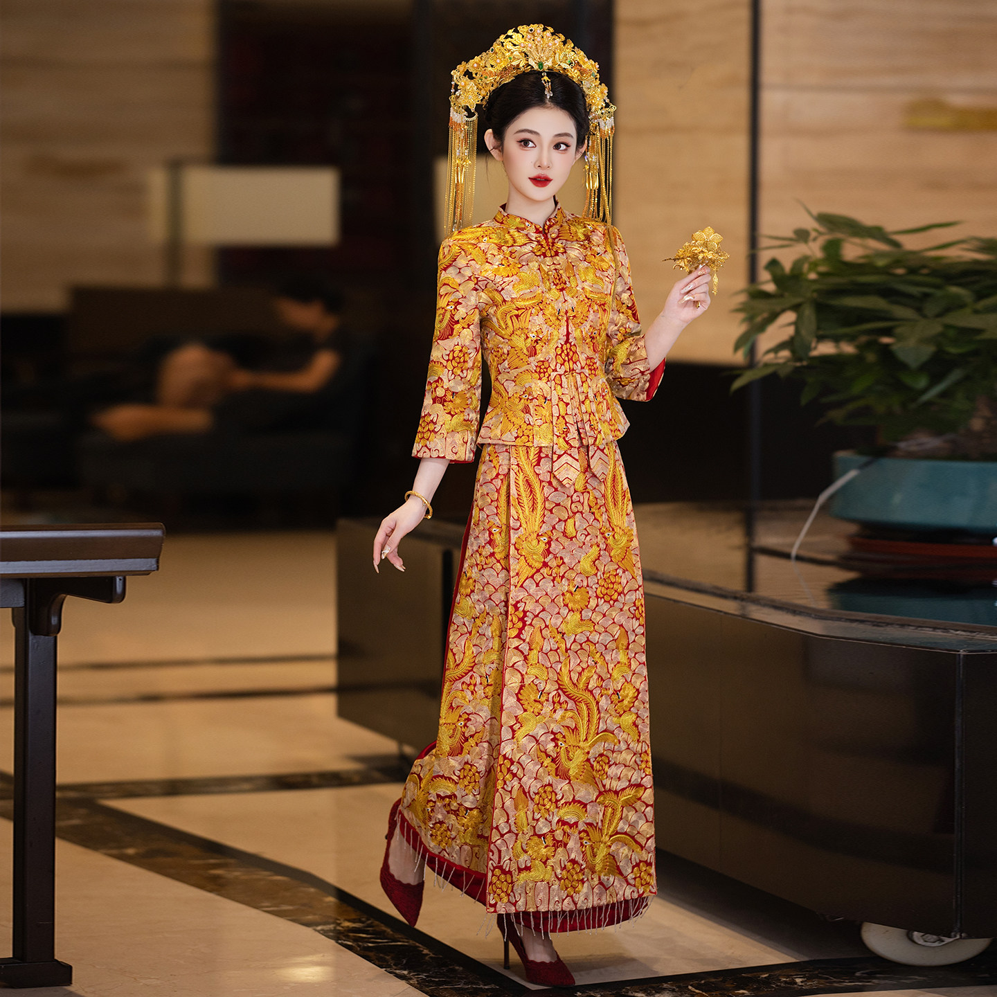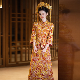 金色龙凤褂新娘2025新款 出阁嫁衣结婚秀禾服婚服敬酒服冬 复古中式
