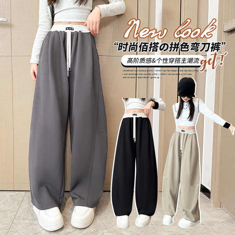 子加绒加厚秋冬装 弯刀裤 2025新款 女大童休闲裤 儿童运动卫裤 女童裤