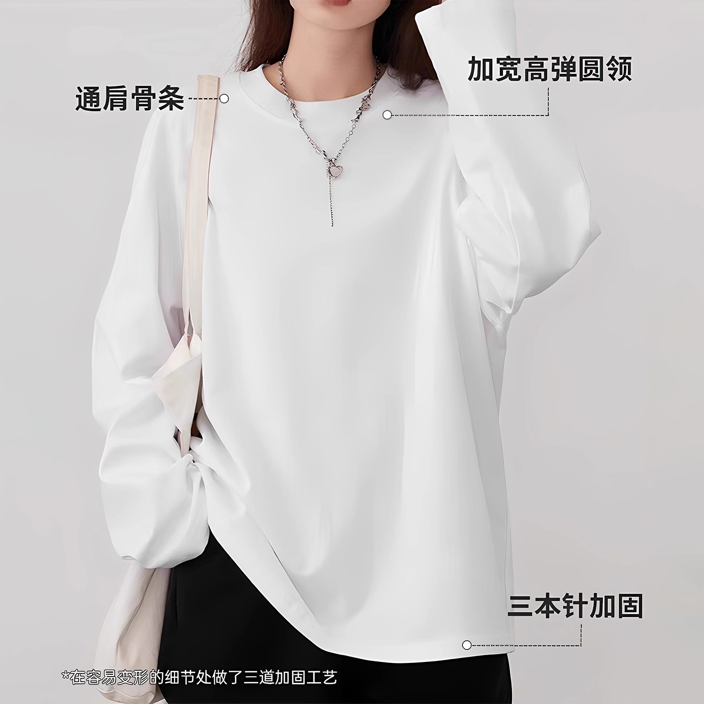 TEDIOUS纯棉长袖 上衣圆领 重磅百搭白色T恤男女秋冬内搭简约打底衫