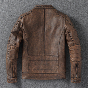 立领皮夹克潮 短款 阿美咔叽头层牛皮机车服美式 复古真皮皮衣男士