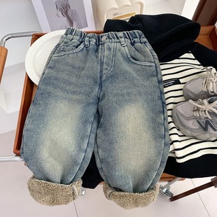 男女童一条过冬保暖裤 中小童宽松长裤 2025冬款 儿童加绒加厚牛仔裤
