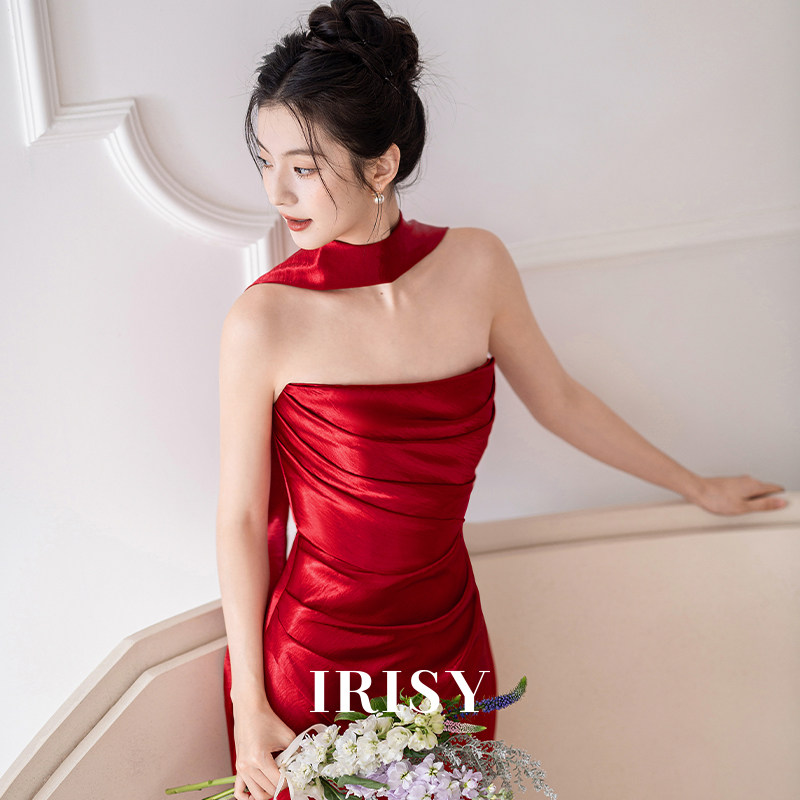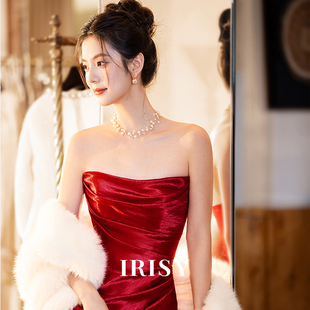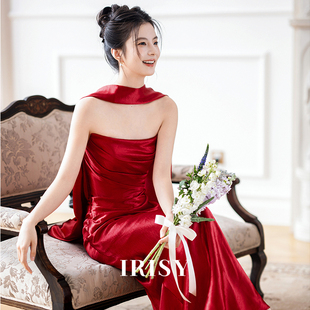 IRISY 连衣裙 红色抹胸新娘结婚敬酒服轻奢高级感订婚礼服晨袍长款