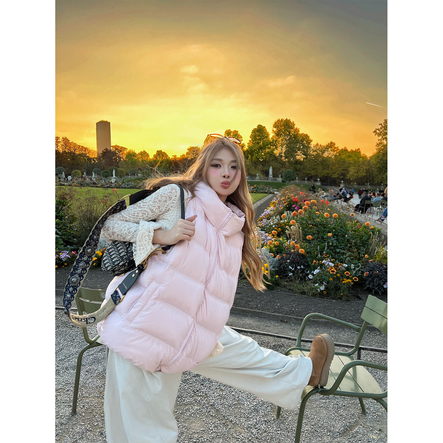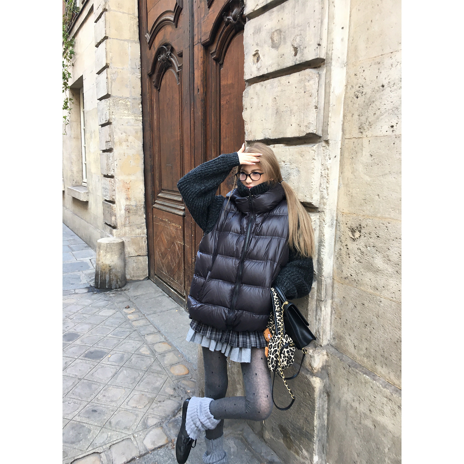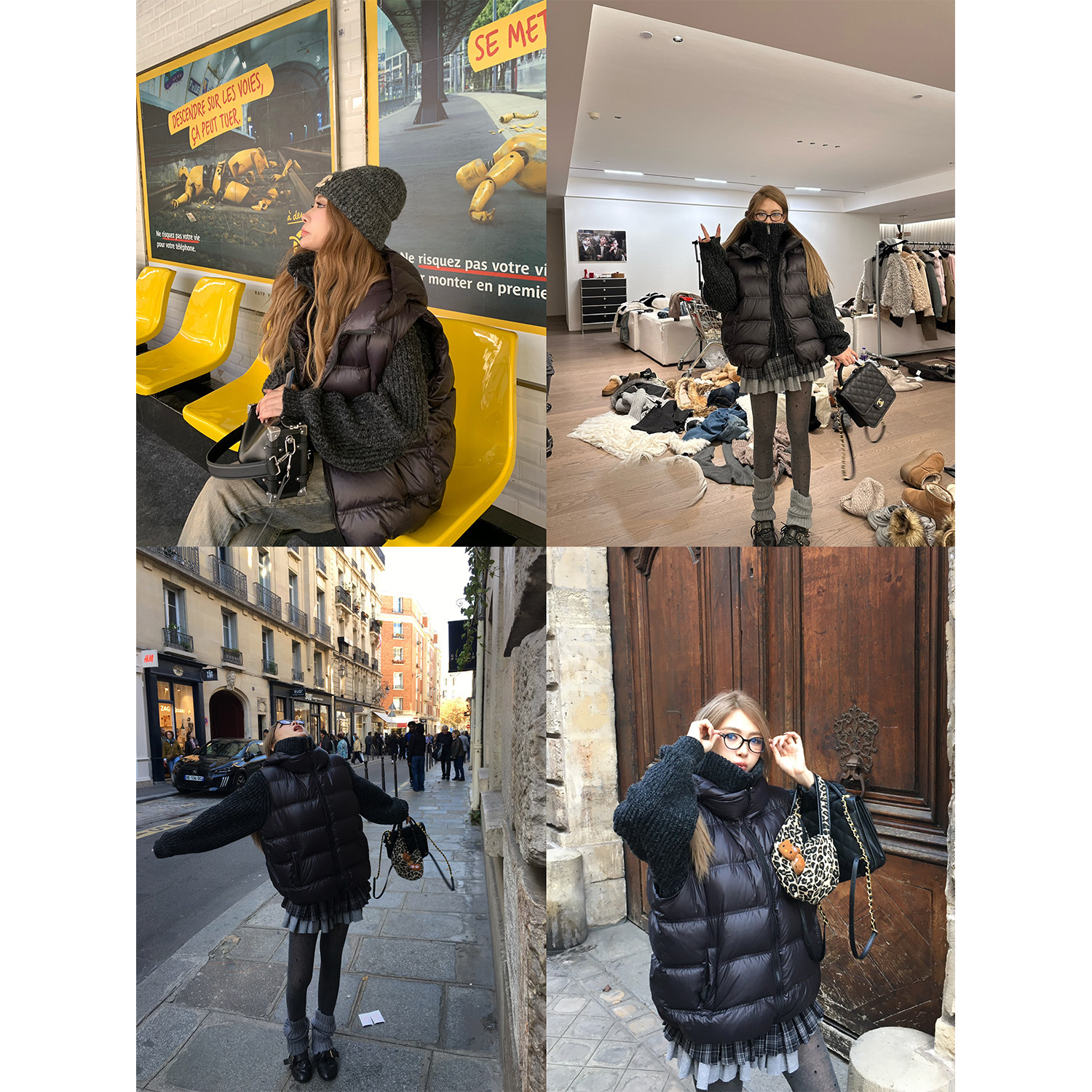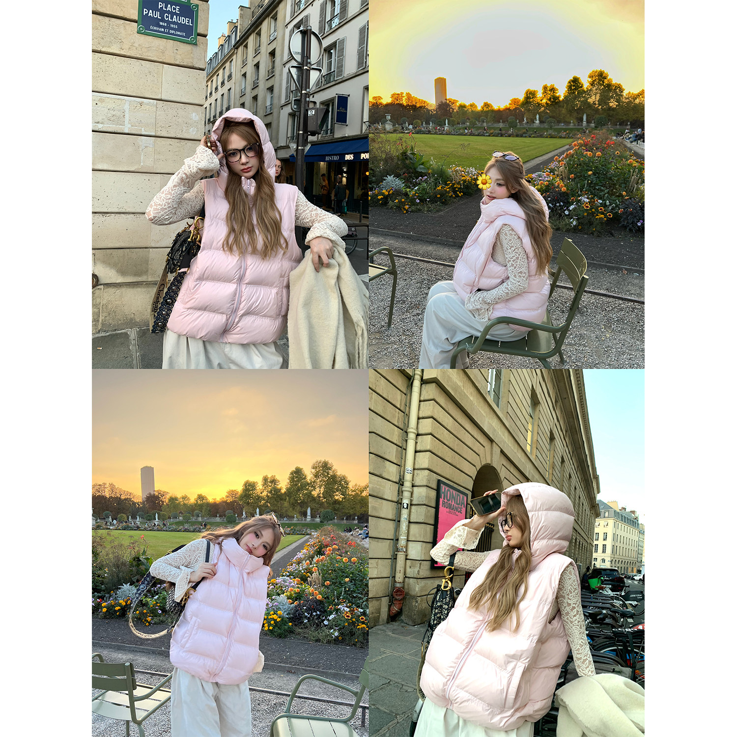 柔软蓬松90白鸭绒连帽羽绒马甲 奶油泡芙 Xinlei Lin