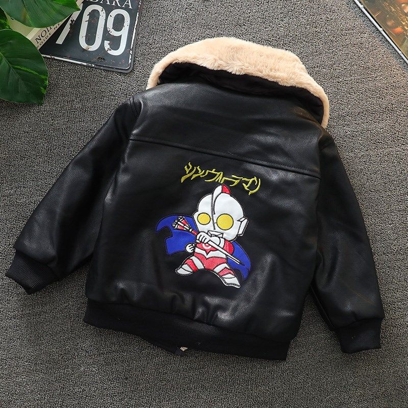 宝宝洋气皮夹克防风儿童秋冬装 皮衣加厚2024新款 冬款 男童加绒套装