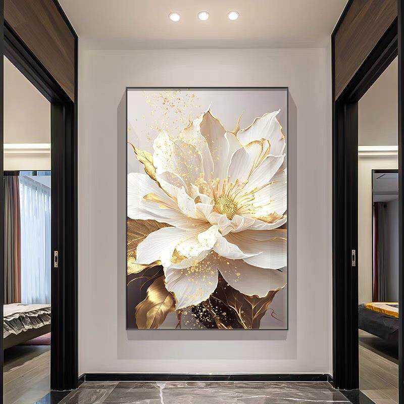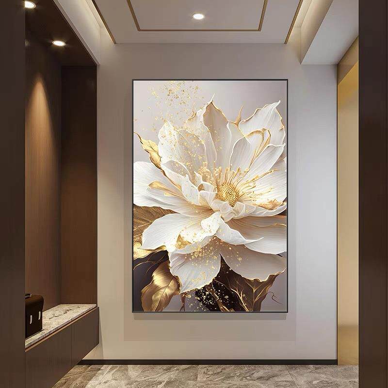 入户366轻卉玄关装 饰画现代奢牡丹花挂画大气走廊过道楼梯间餐厅