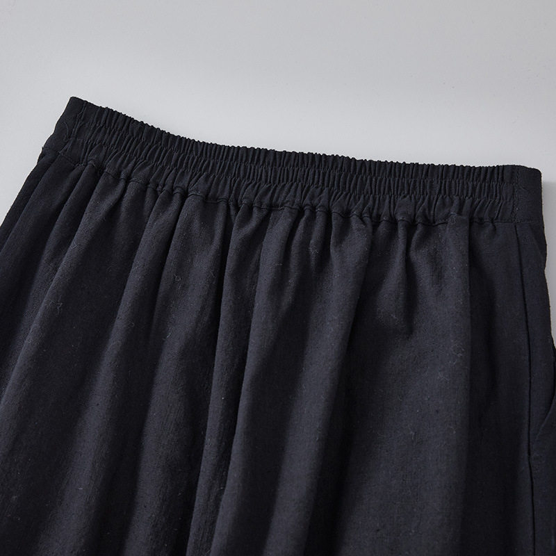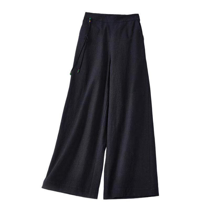 通勤日常松紧腰女裤 婵茶赋文艺棉麻女休闲垂感直筒阔腿裤 显瘦长裤