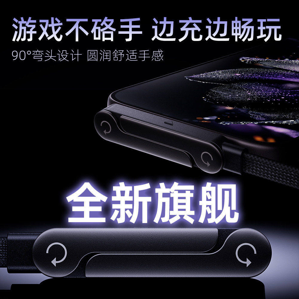240W数据线多功能折叠支架编织线充电线适用于华为荣耀苹果15手机1617maxOPPO小米typec手机快充线数显充电头