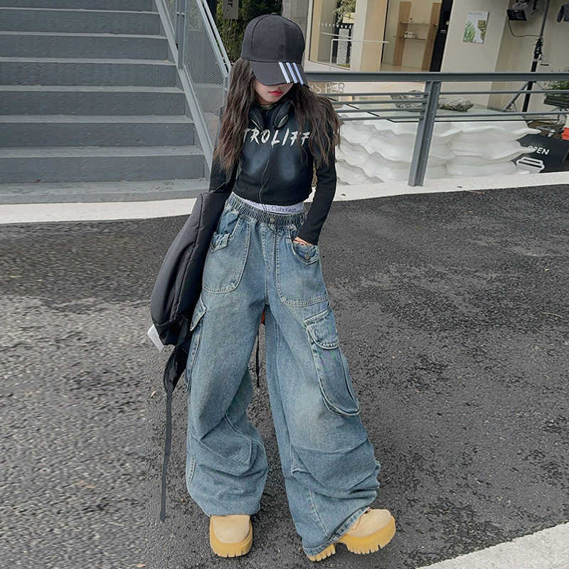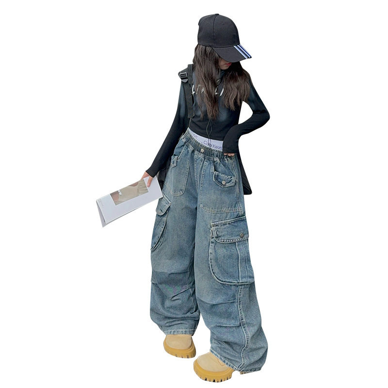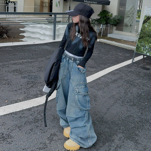 街舞嘻哈潮裤 女童多口袋炸街工装 儿童春秋装 2026新款 子 阔腿裤