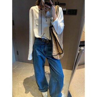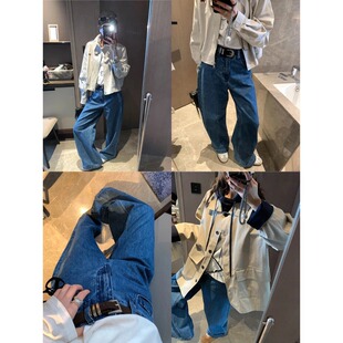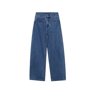 MQ1136 高级感水洗蓝弯刀剪裁宽松阔腿牛仔裤 摩且 时髦博主腔调