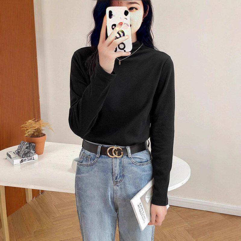 堆堆领气质优雅高弹通勤风 修身 打底衫 女半高领加厚保暖打底衣长袖