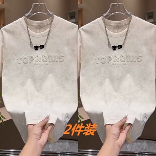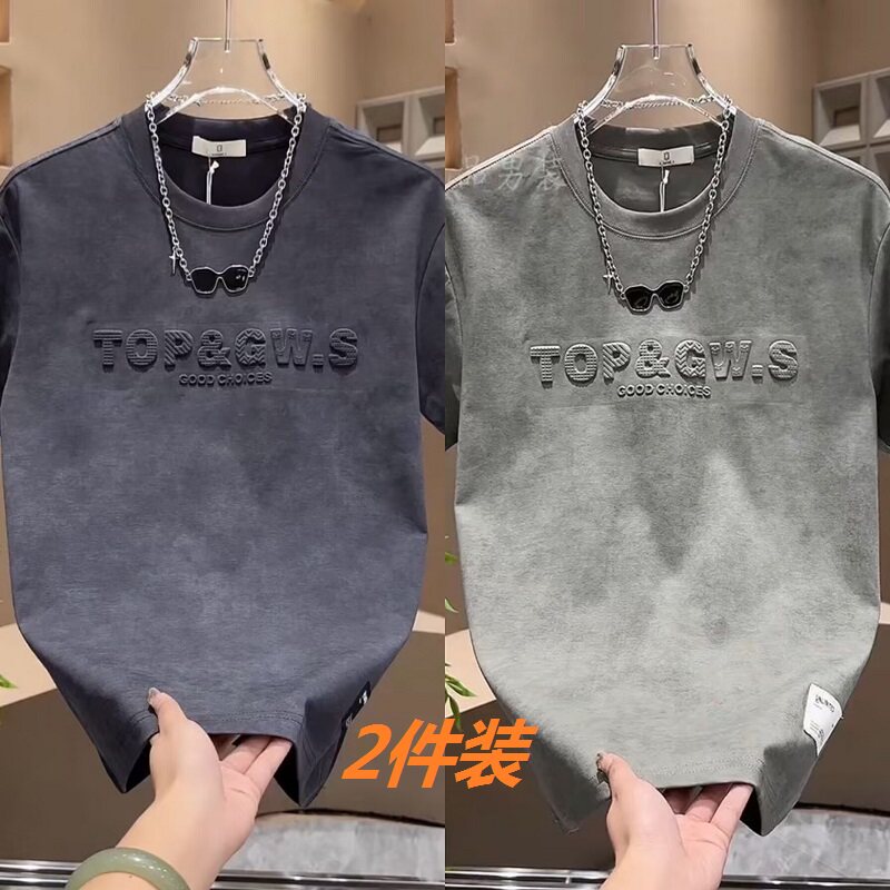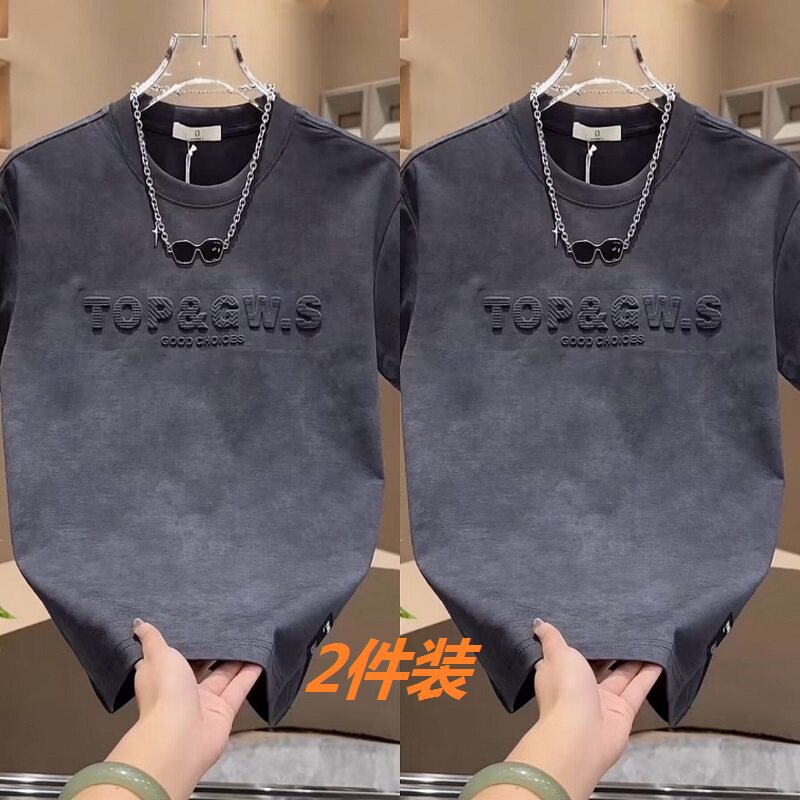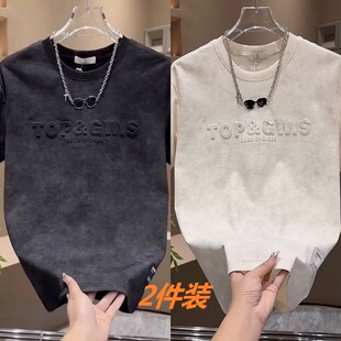 夏天短袖 钢印T恤男青少年帅气宽松上衣百搭体恤2件 t恤男潮流美式
