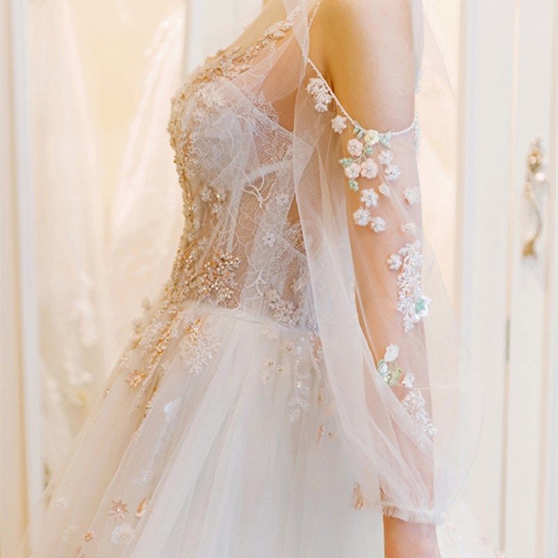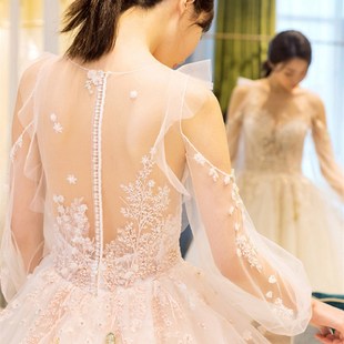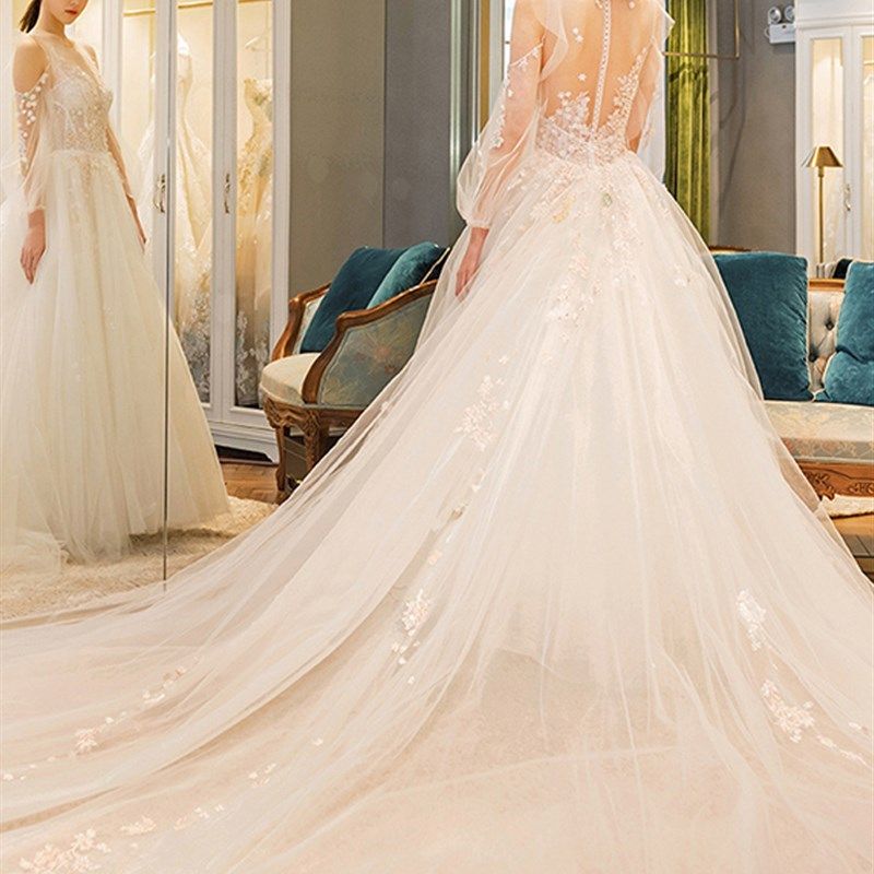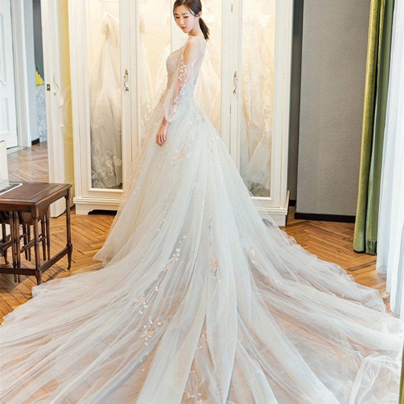 主拖尾简约大气公主风2020气质礼服裙 法式 轻婚纱2021新款 新娘夏季