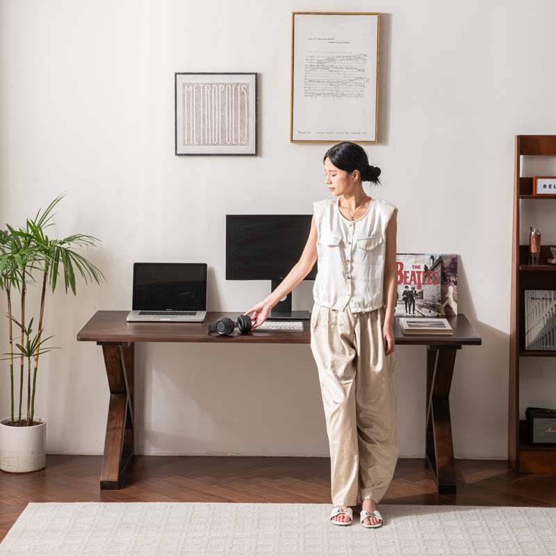 胡桃木大板桌 电脑桌 北美黑胡桃实木电脑桌 家用侘寂中古风书桌式
