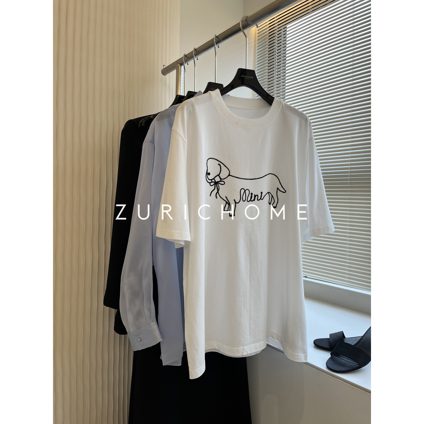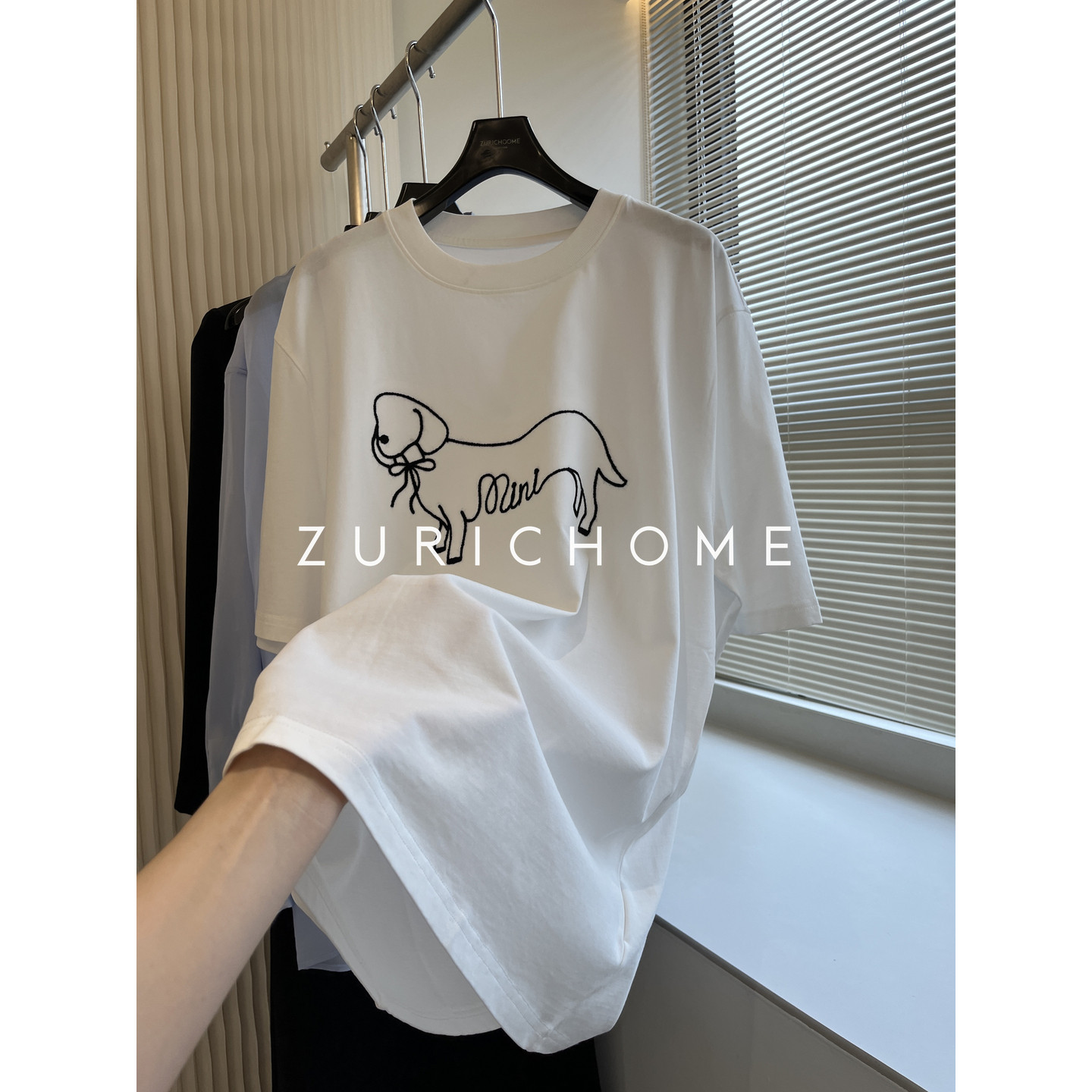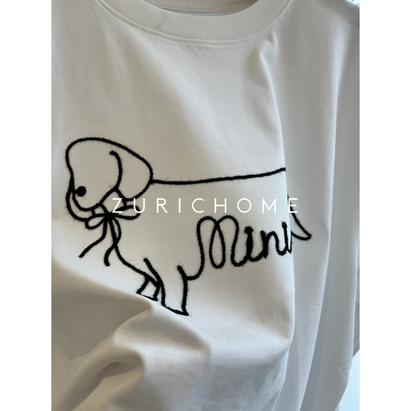 宽松休闲白色刺绣小狗短袖 青春可爱趣味刺绣小狗 T恤 HOME ZURICH