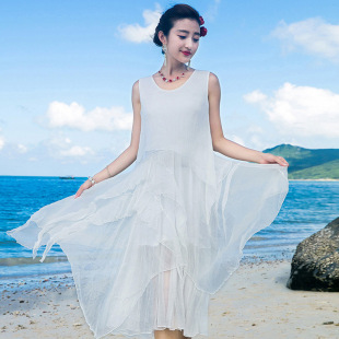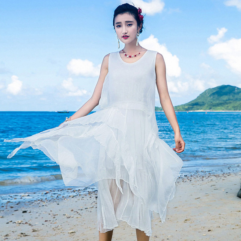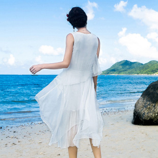 长裙纯真丝连衣裙不对称桑蚕丝大摆裙仙女 欧美时尚 夏季 新款