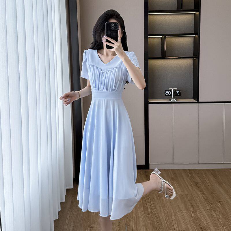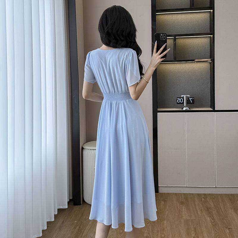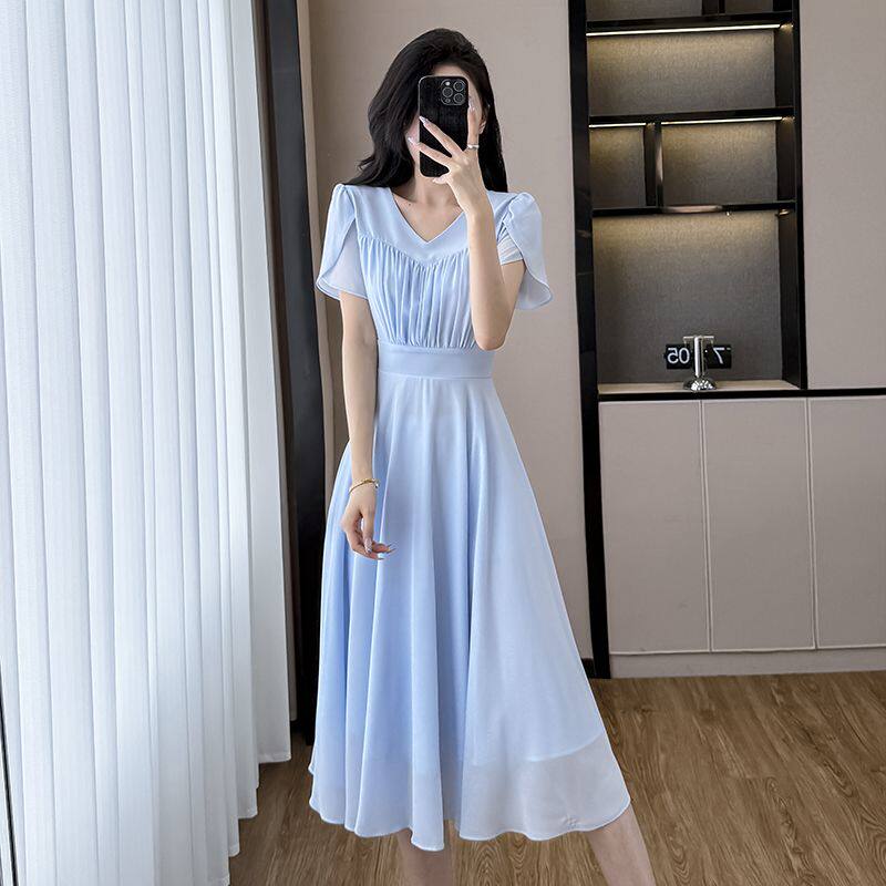 法式 夏季 巨好看蓝色桔梗裙 漂亮气质雪纺连衣裙2025新款 今年流行