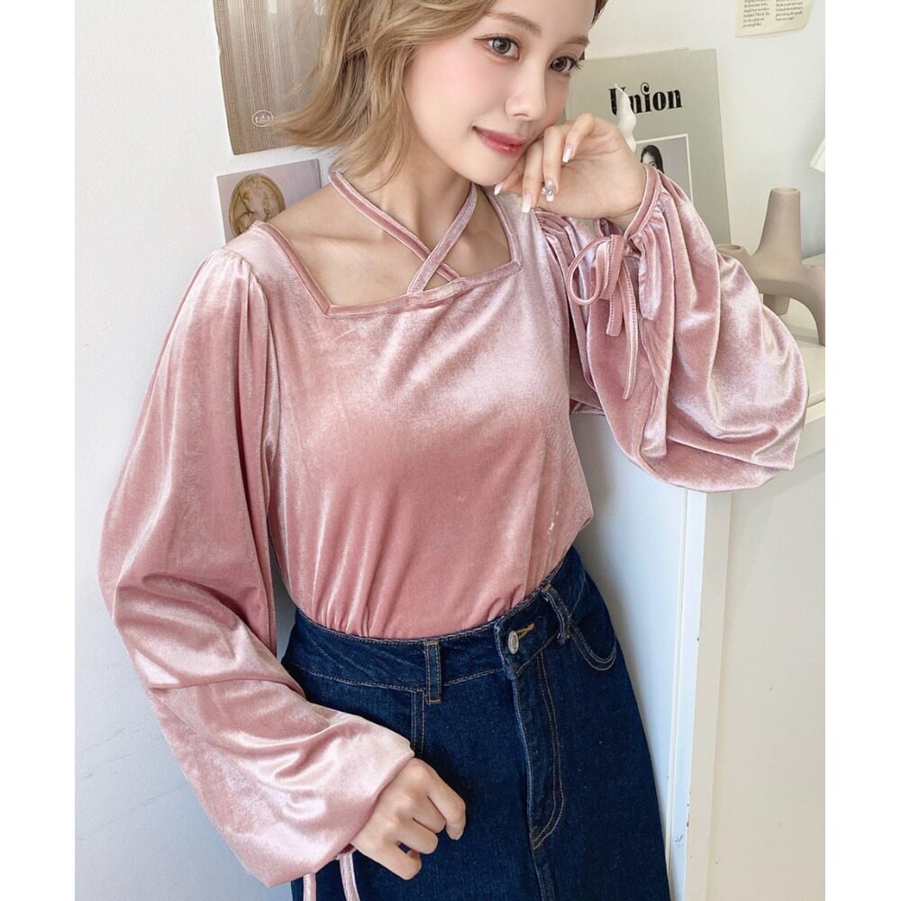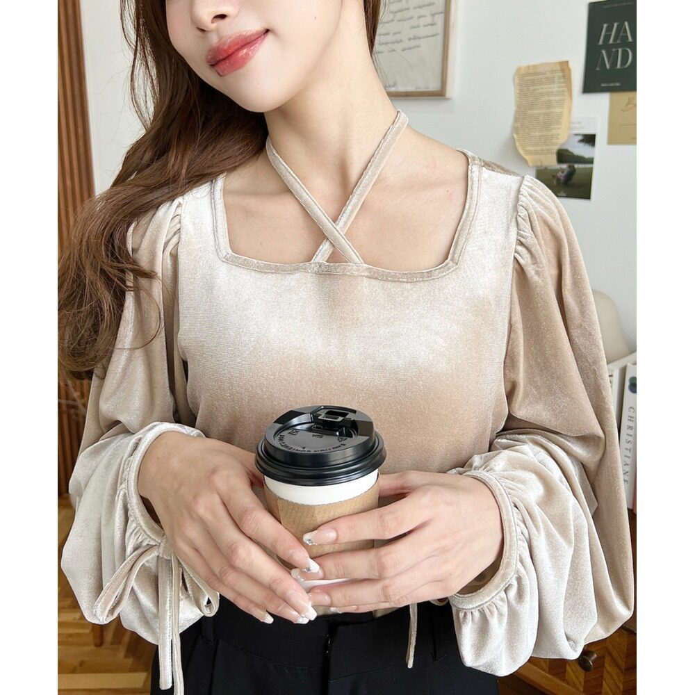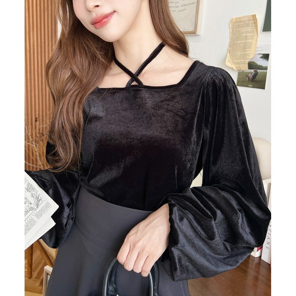 上衣 女士方领交叉领绒面长袖 mt07145 日本直邮moment 1h可退