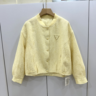 欧语思6806欧货时尚 单排扣圆领三角标短外套显瘦百搭小个子上衣春