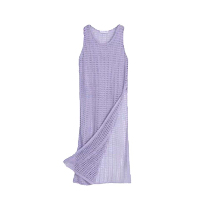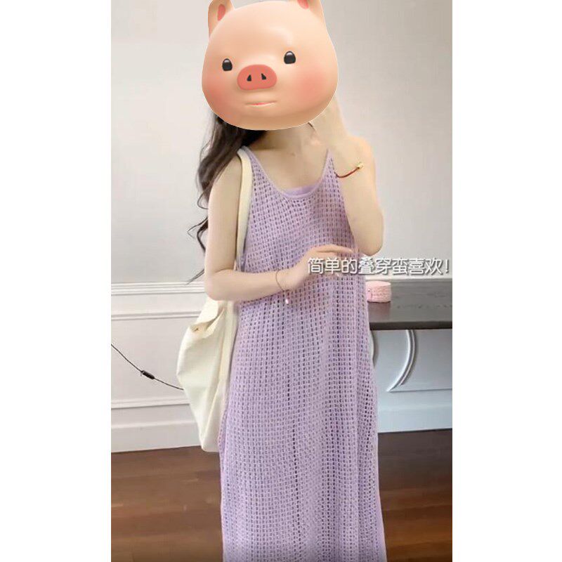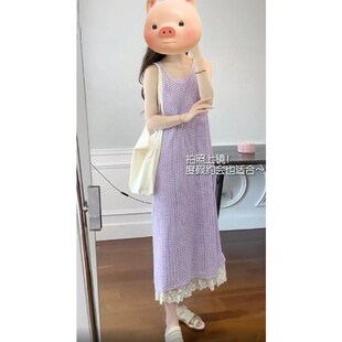 香芋紫色镂空针织背带连衣裙女夏季 海边度假风叠穿长裙子 外搭罩衫