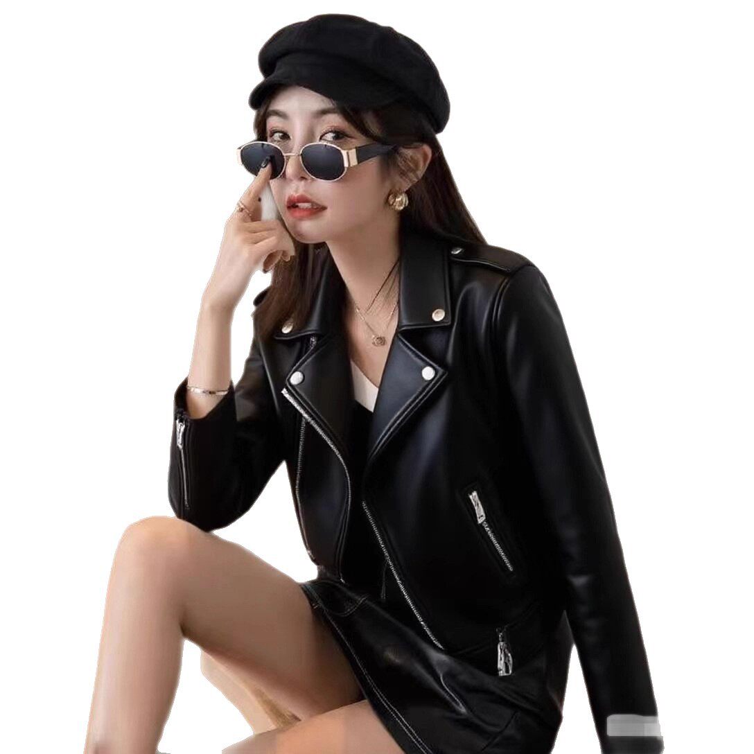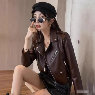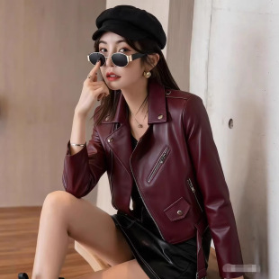 夹克机车服 皮外套女式 厂家亚马逊欧美长袖 女士皮夹克pu皮衣女短款
