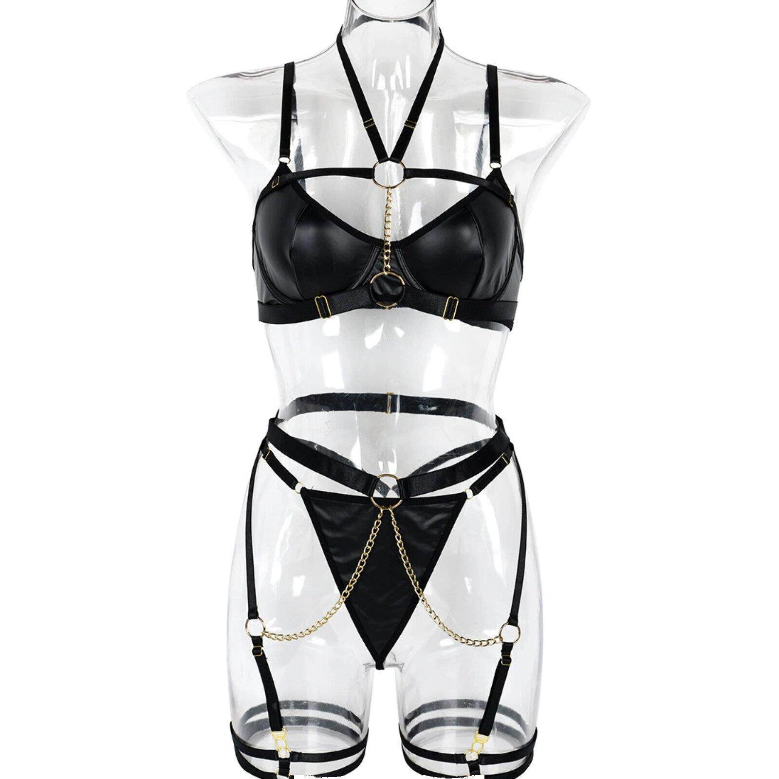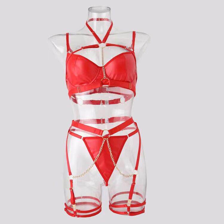 女士红黑粉搜查官制服塑身分体套装 大码 炫彩漆皮3XL拉链背心短裤