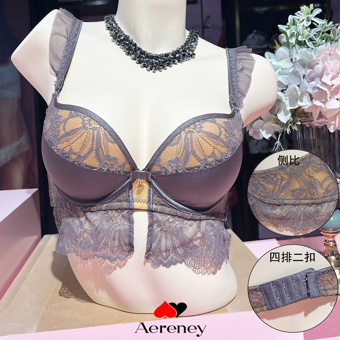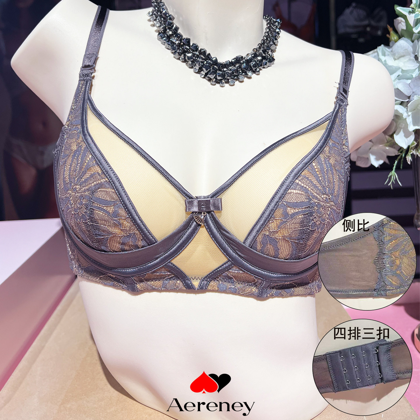 爱亦心伊正品 性感蕾丝内衣聚拢侧收上托防下垂胸罩82256 文胸法式