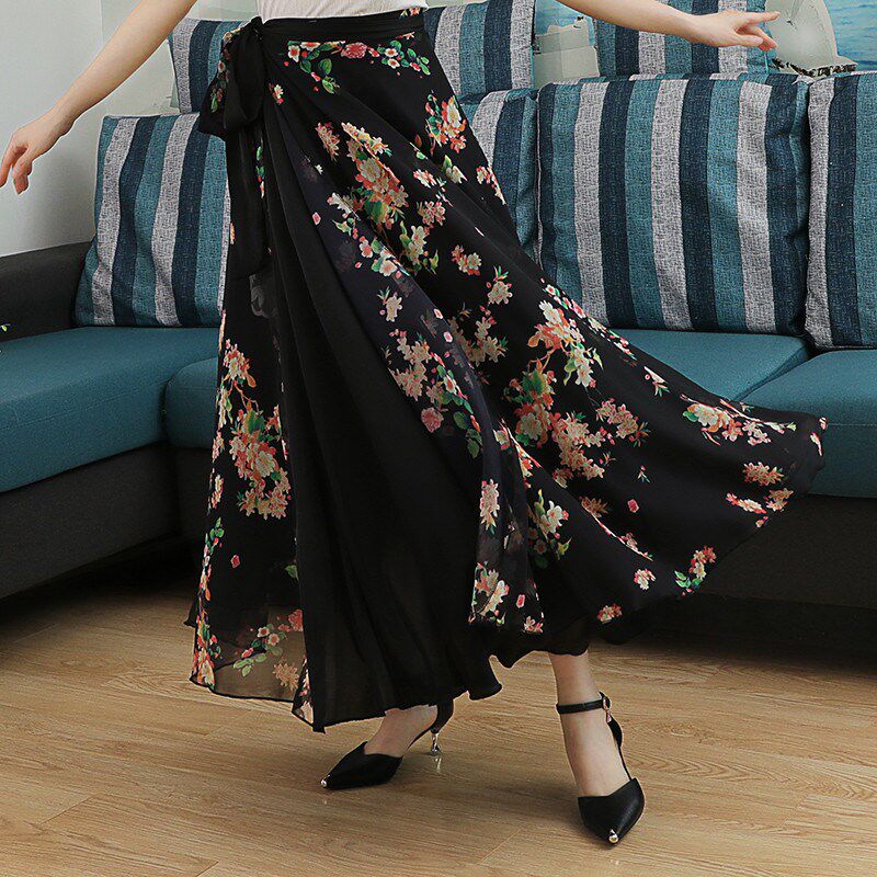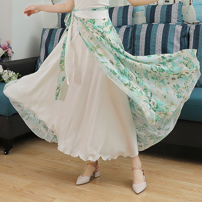 雪纺舞蹈半身裙开场舞大摆裙舞蹈服新款 720度设计感碎花拖地长裙