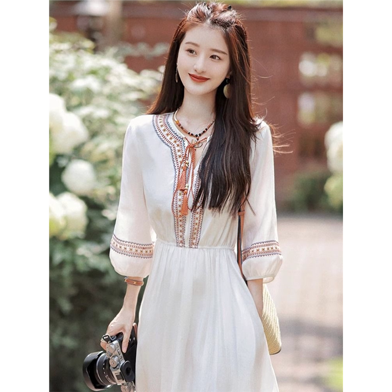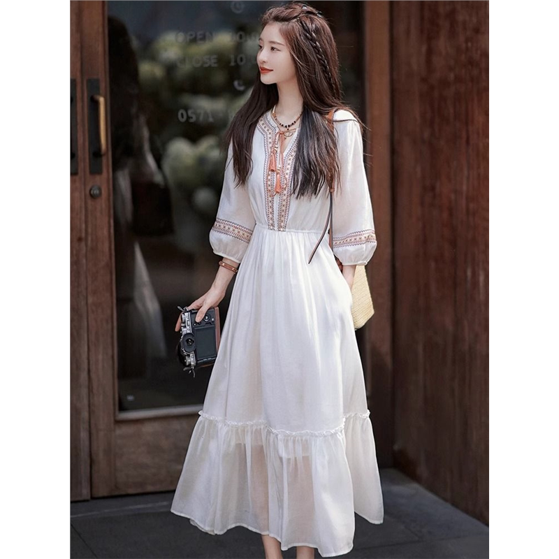 波西米亚民族风格 连衣裙清新可爱云南旅游超仙森系沙滩度假穿搭