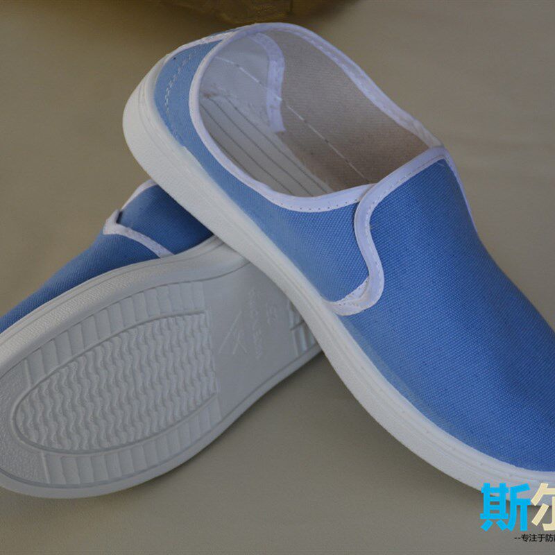 蓝土黄全网透气 无尘净化无尘室工作鞋 防静电鞋 帆布中巾工作鞋