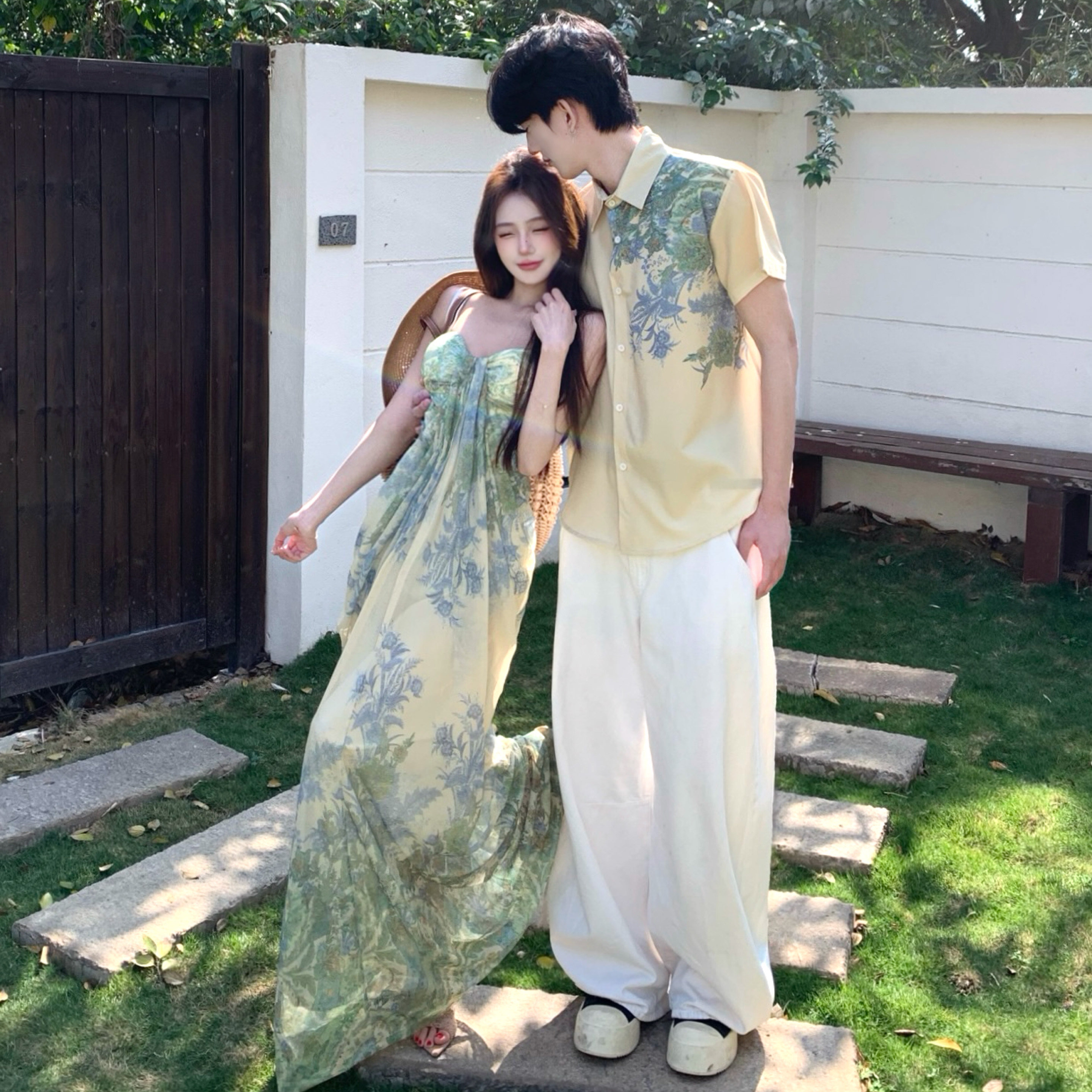 吊带连衣裙男女海边度假三亚沙滩长裙一裙一衣 法式 情侣装 2026夏季