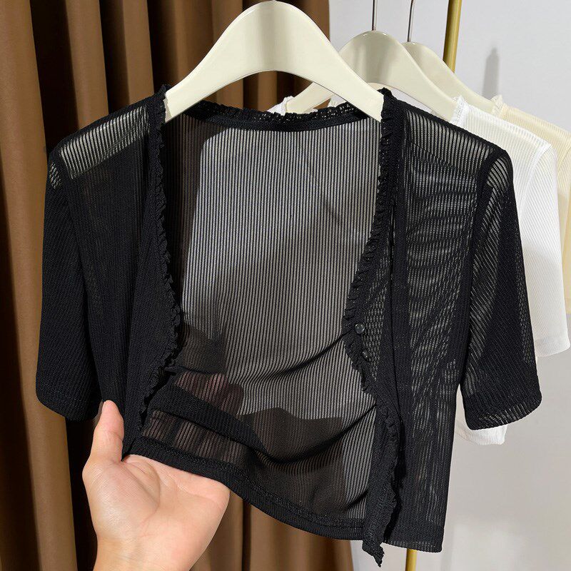 配裙子冰丝防晒罩衫 薄纱小披肩夏季 吊带裙外搭小坎肩上衣 开衫 短袖