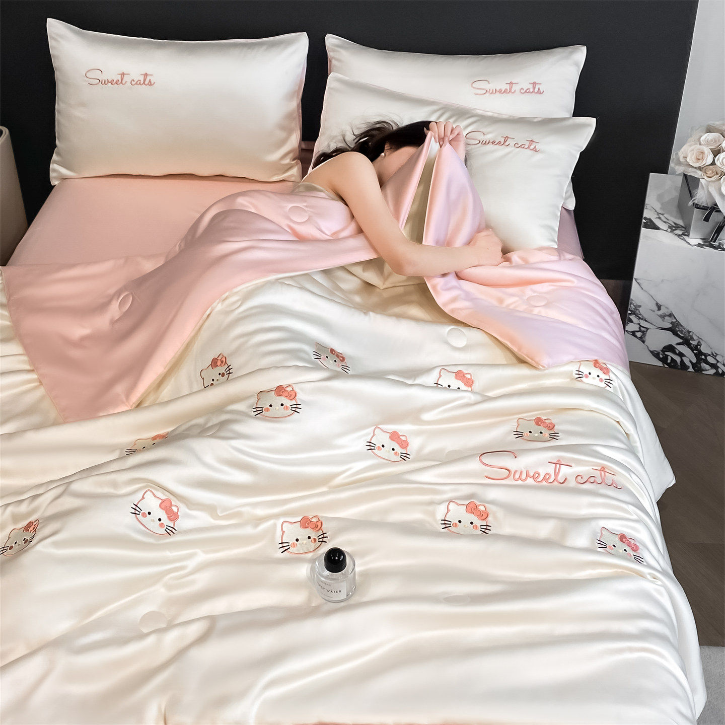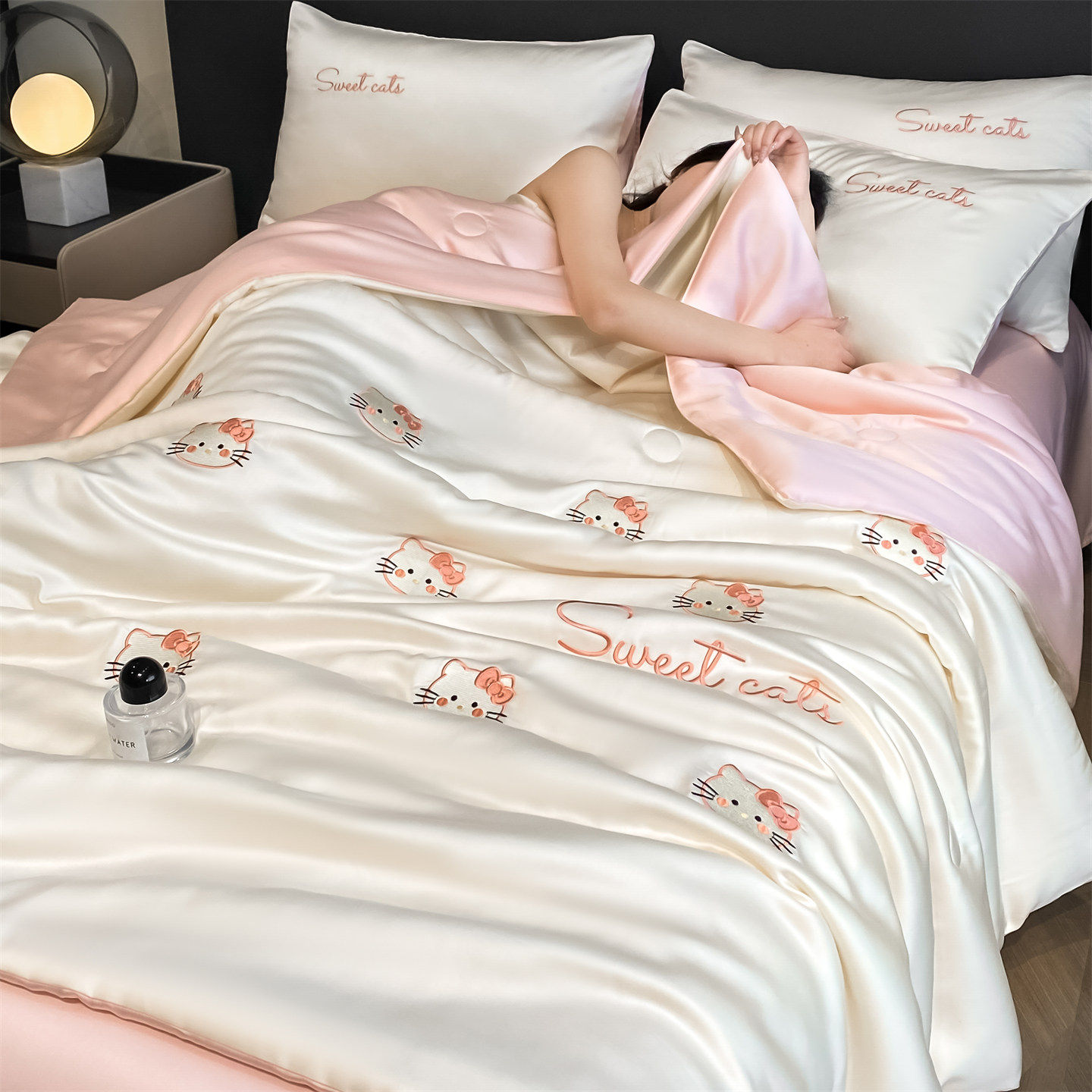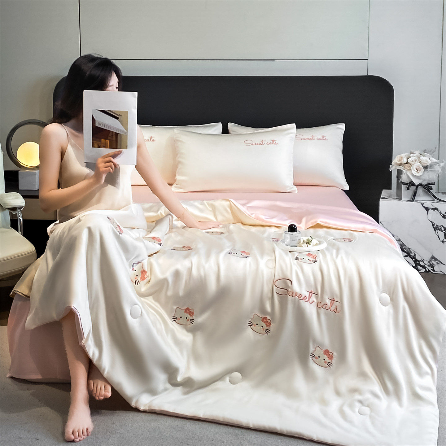 水洗冰丝夏凉被四件套2026新款 夏被非全纯棉 可机洗空调被单人薄款