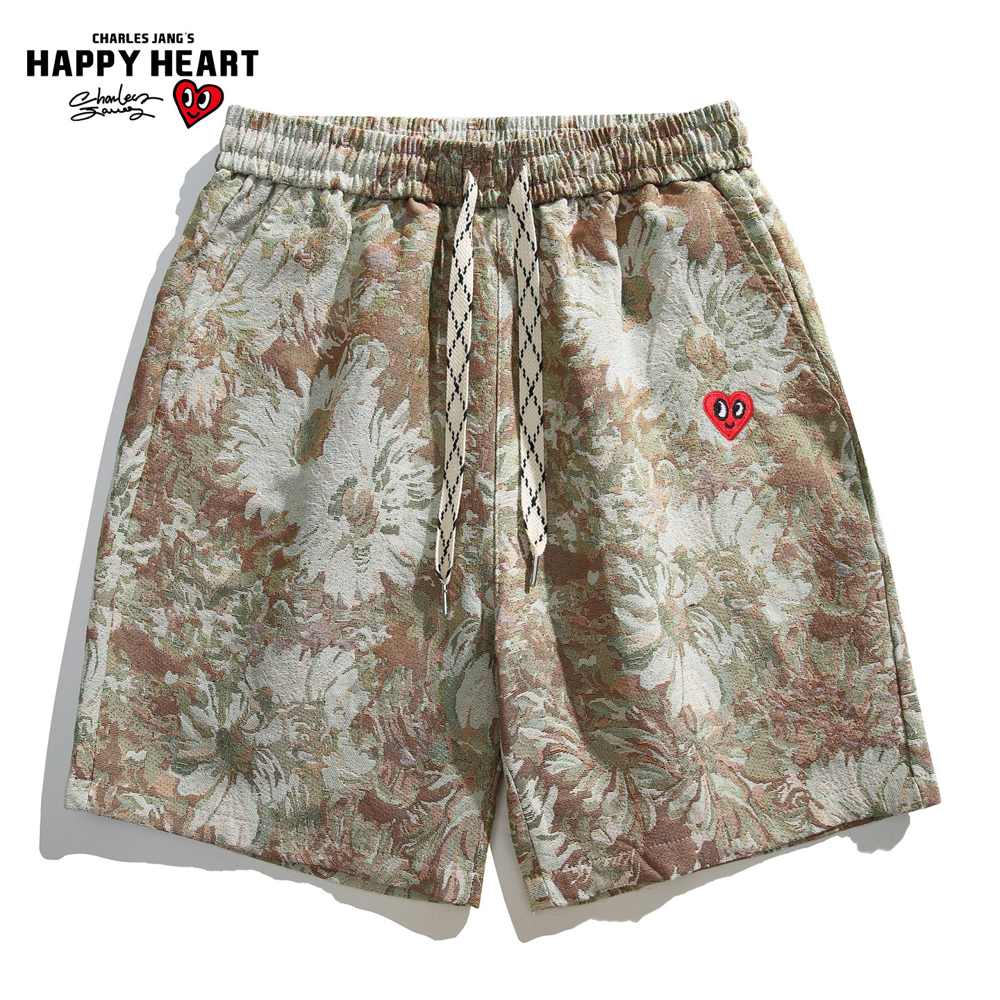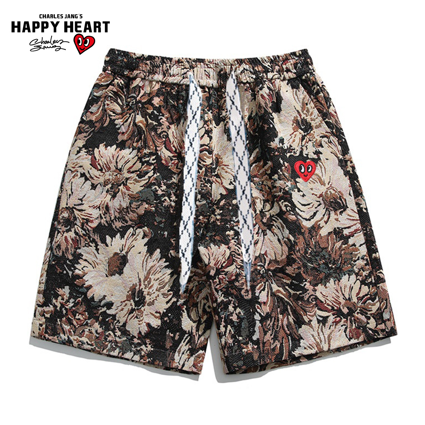 夏威夷度假休闲五分裤 查尔斯桃心美式 2026新款 男夏季 提花沙滩短裤