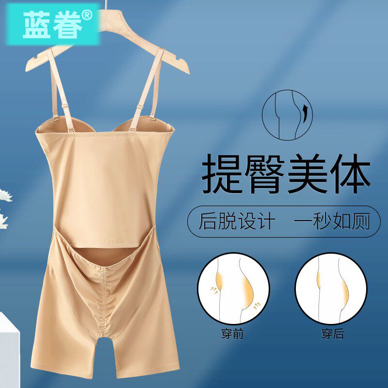日本后脱式 吊带连体塑身衣女带胸罩一体无痕束身美体塑形收腹束腰
