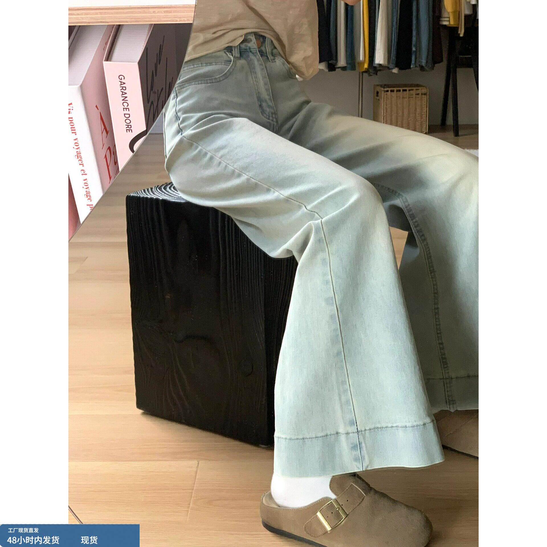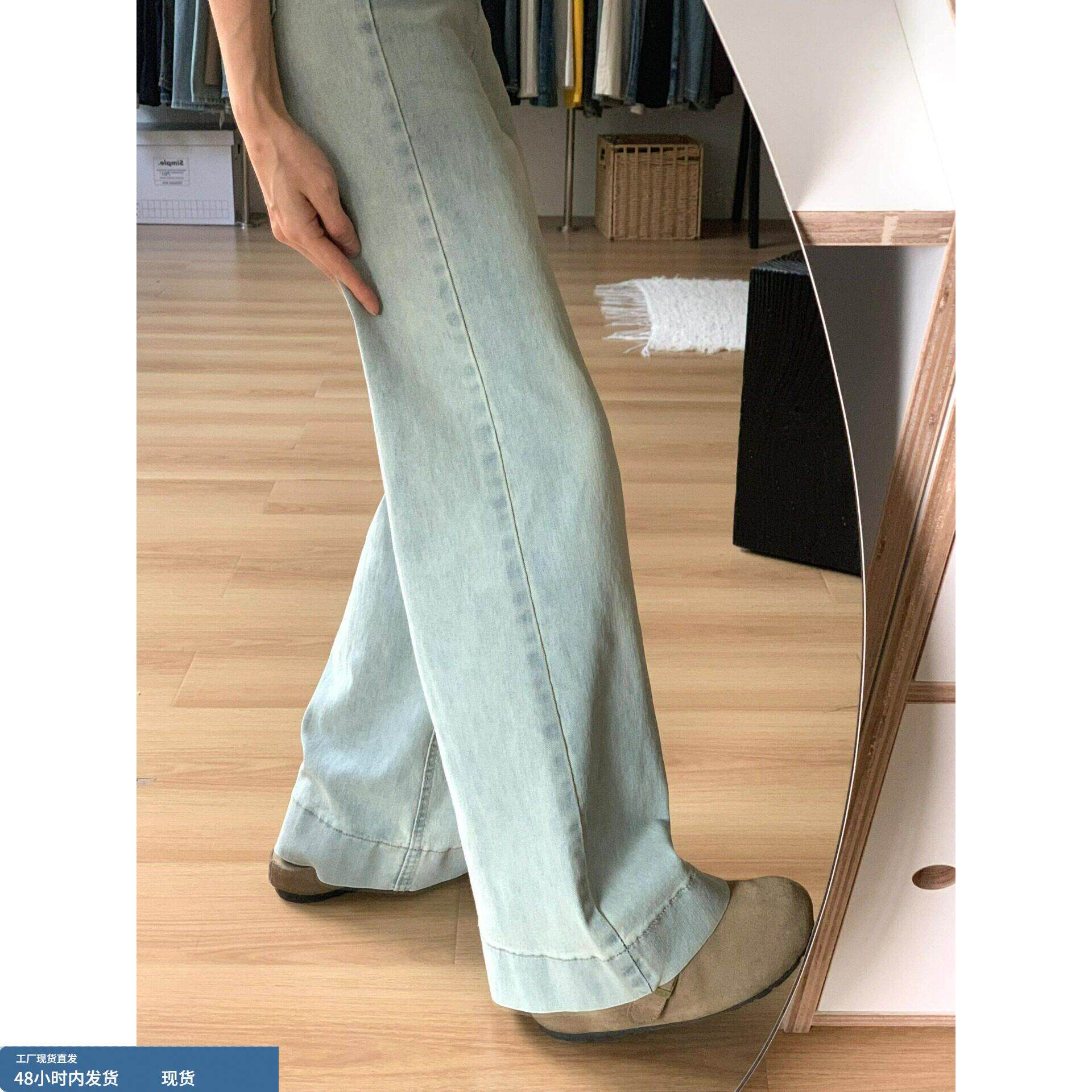 145小矮个子美式 女150显高穿搭高腰直筒拖地xs 复古微喇阔腿牛仔裤
