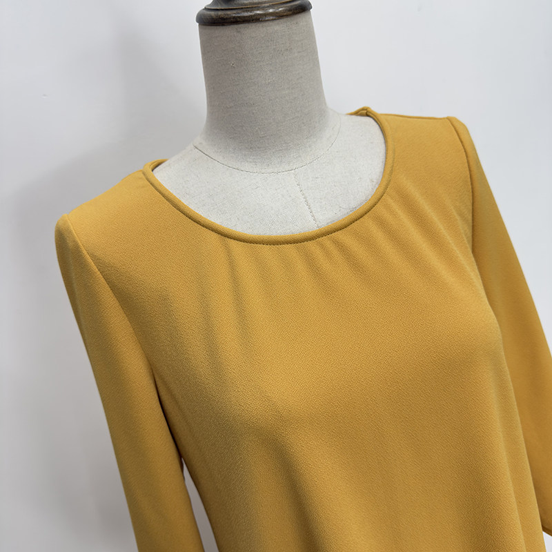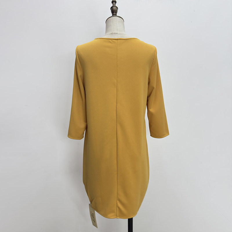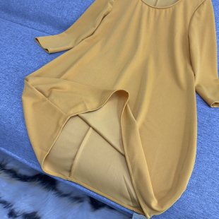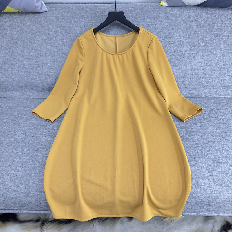 春秋薄款 显瘦气质套头宽松简约纯色茧型裙 浅黄色针织连衣裙七分袖
