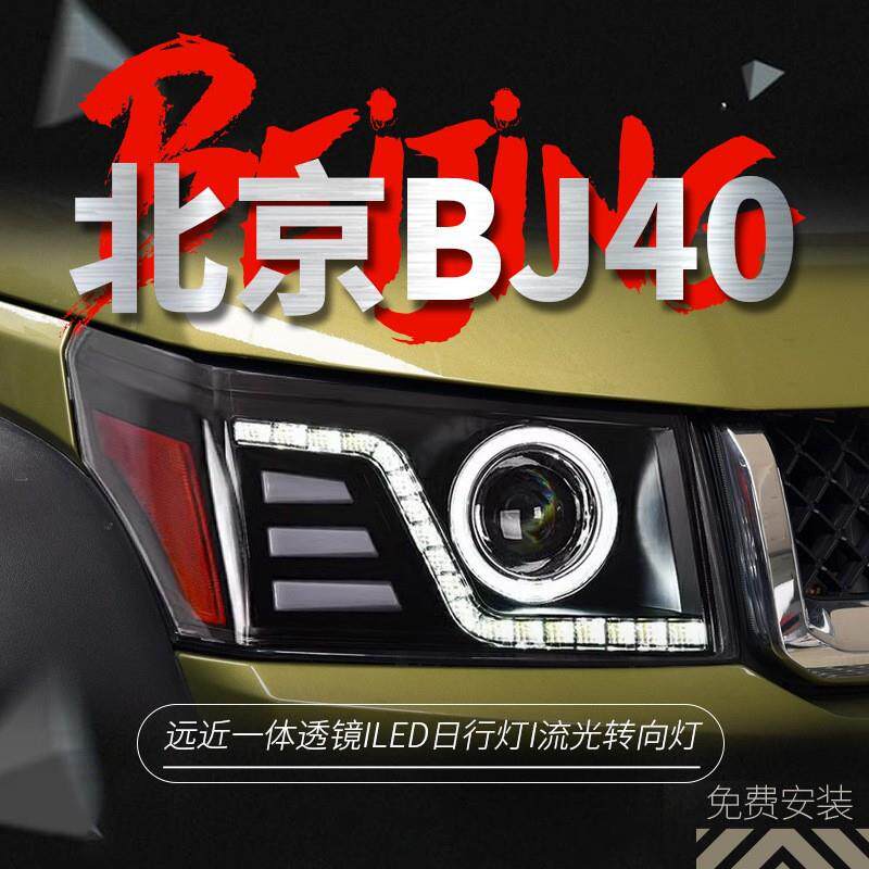 专用于北京BJ40大灯总成改装 LED日行灯流水转向灯天使眼LED大灯
