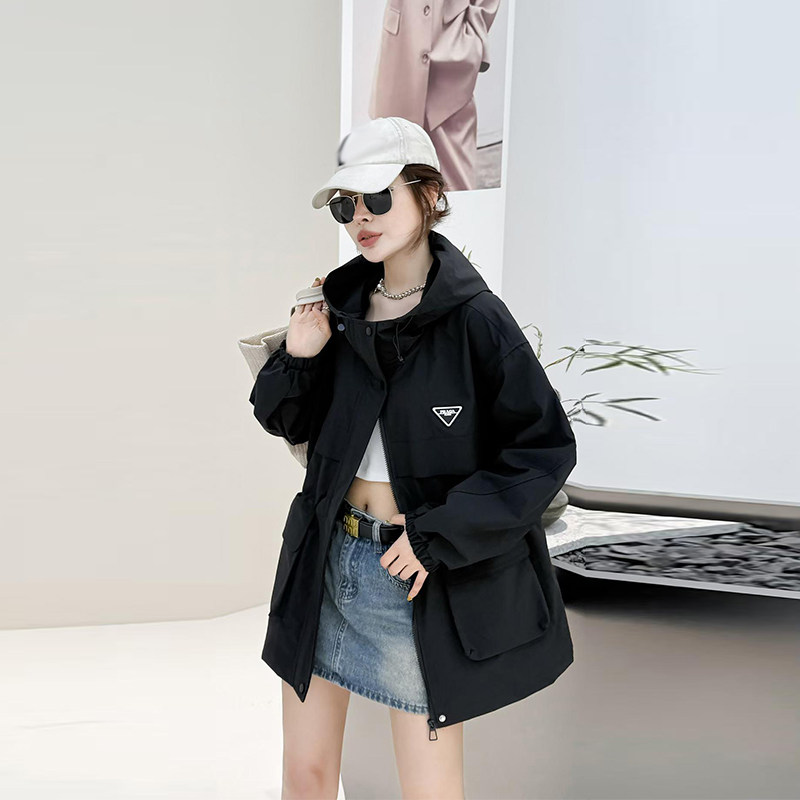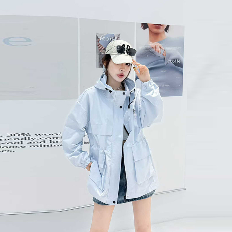 简约百搭上衣 连帽双兜收腰冲锋衣外套胖妹妹2026春秋款 加大码 女装