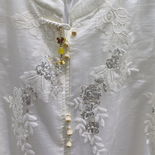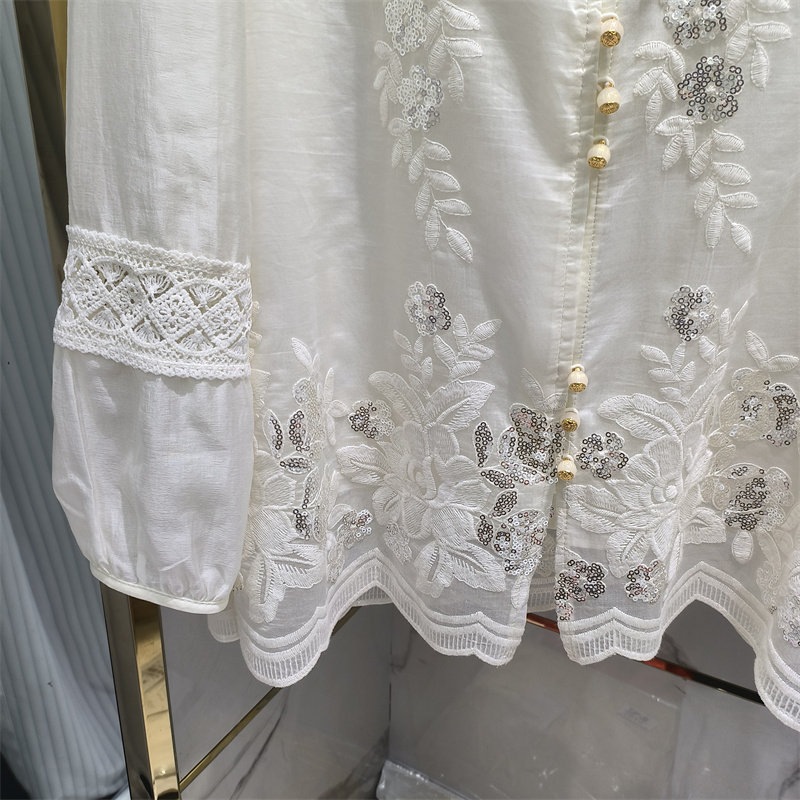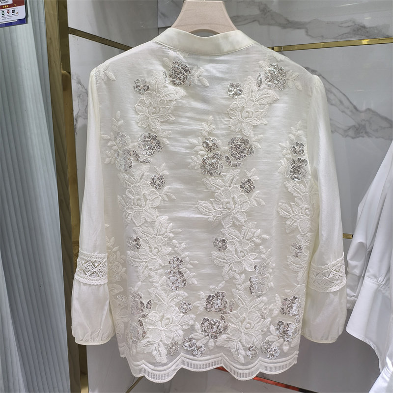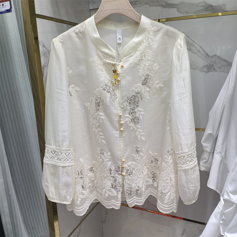 立领盘扣蕾丝显瘦百搭减龄上衣商场同款 女长袖 重工刺绣衬衫 中式