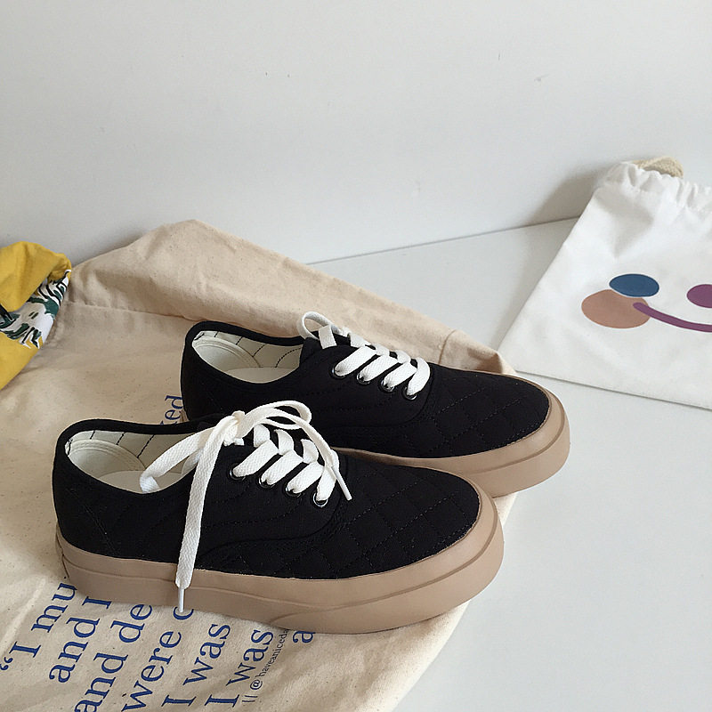 山本风ins潮鞋 黑色帆布鞋 全黑板鞋 低帮百搭韩版 女复古港味小黑鞋