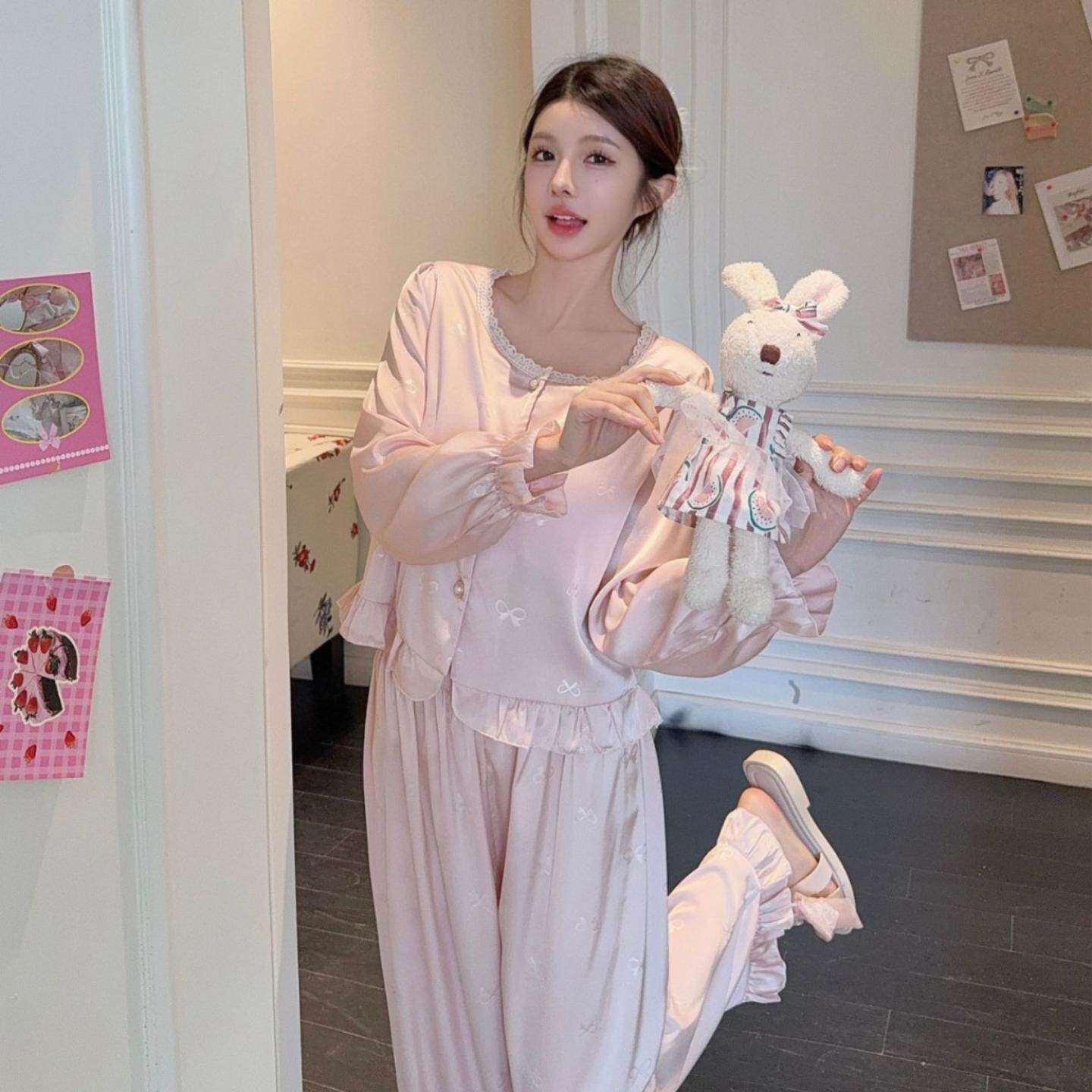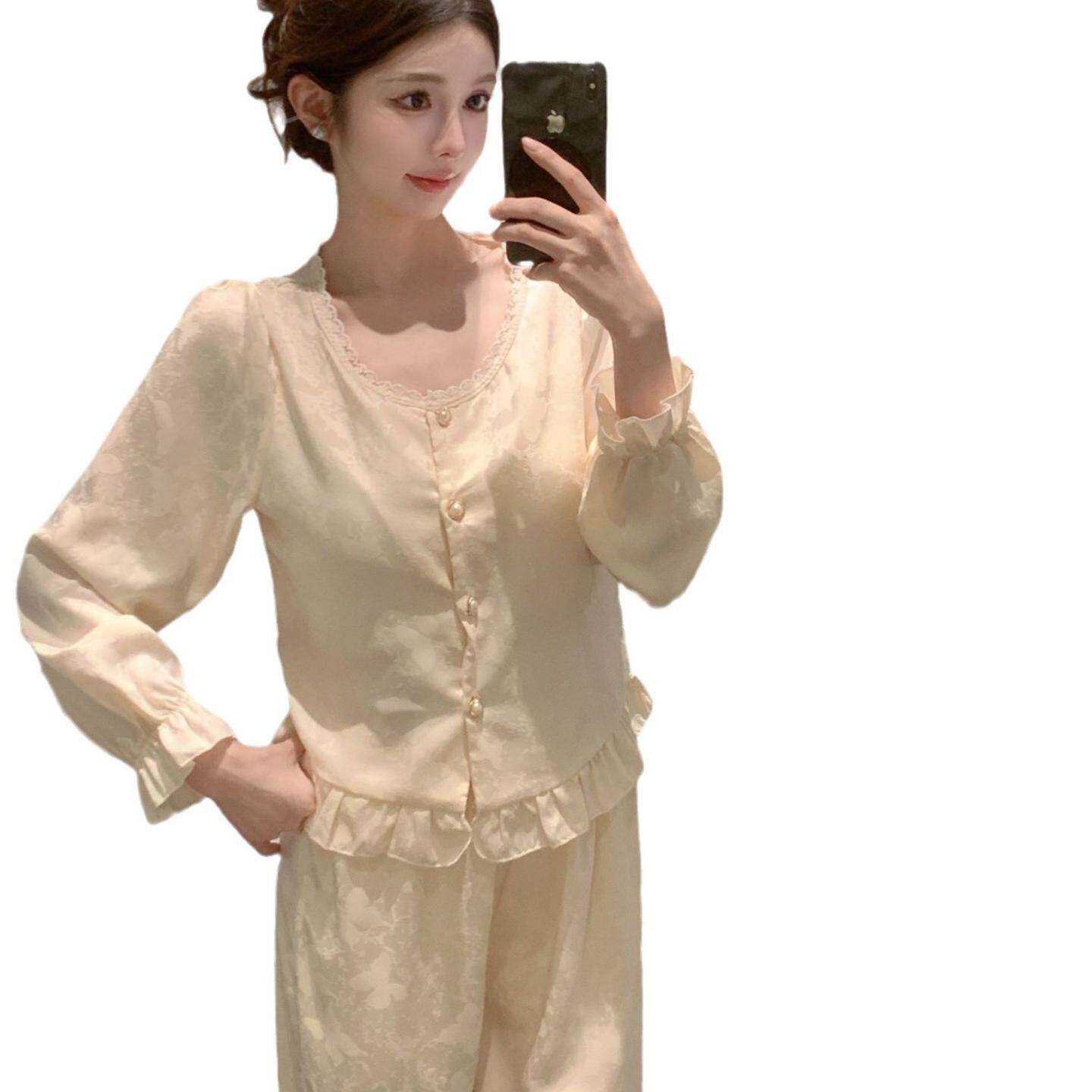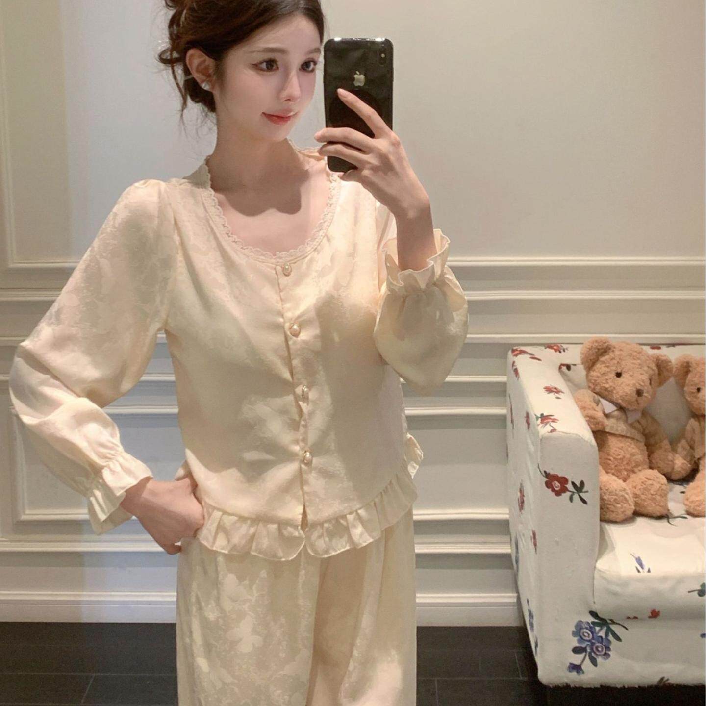 长裤 提花睡衣长袖 复古花边家居服宫廷甜级感睡衣 新款 秋季